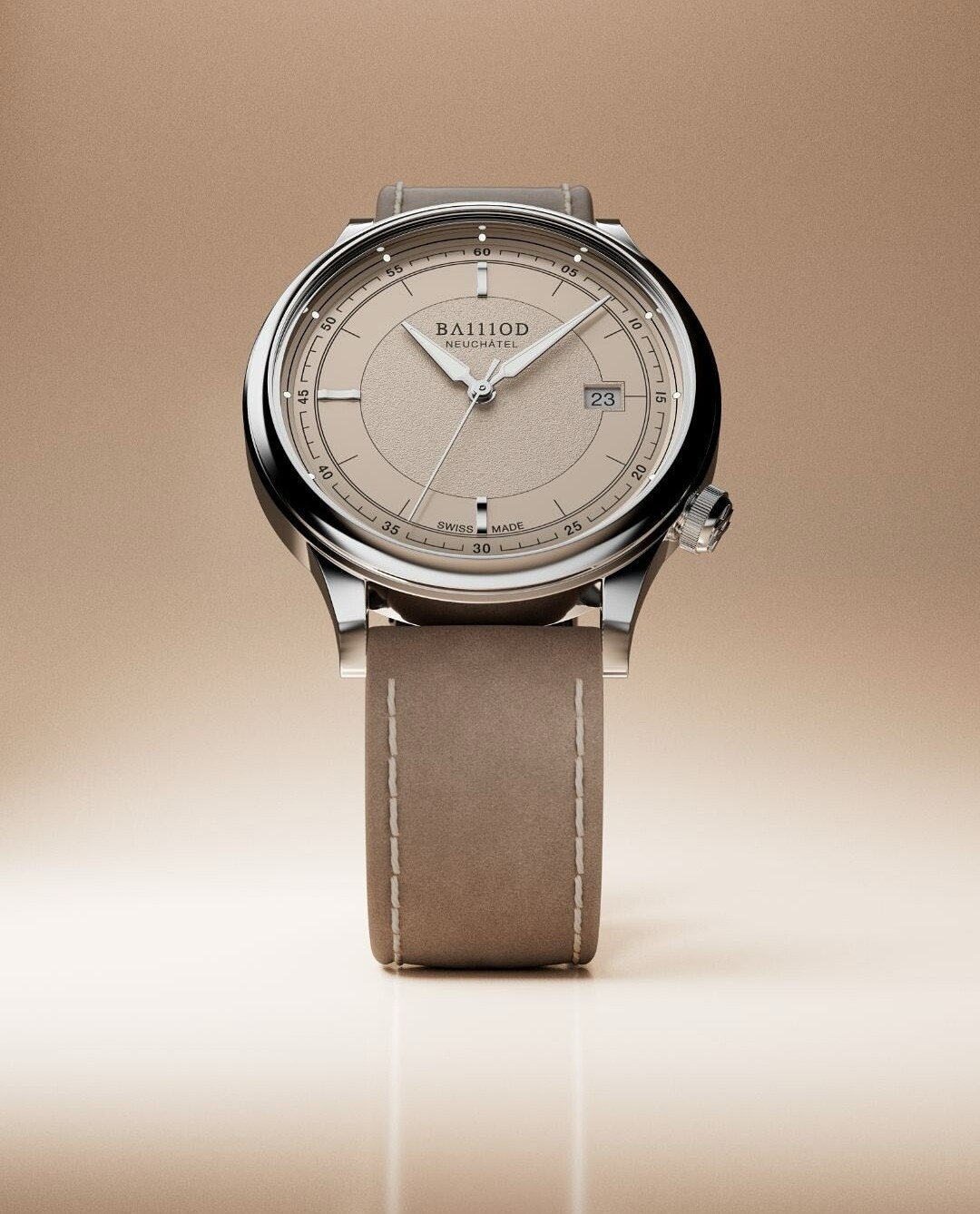 Beda’a Eclipse. Het verwarde me eerst even dat met een ‘herhalende tiensecondenindicator’ en een ‘sweeping hour’ dit een normale SW300 heeft, maar joke’s on me, want vervang de uren hand door een schijf en verstop een secondewijzer en minutenwijzer achter een ‘schild’ en maak een tiensecondenraampje en je bent klaar. Ik had dit vanwege de layout verward met een jumping hour en de herhalende tienseconden als een soort ‘minute reapeter’ geïnterpreteerd.