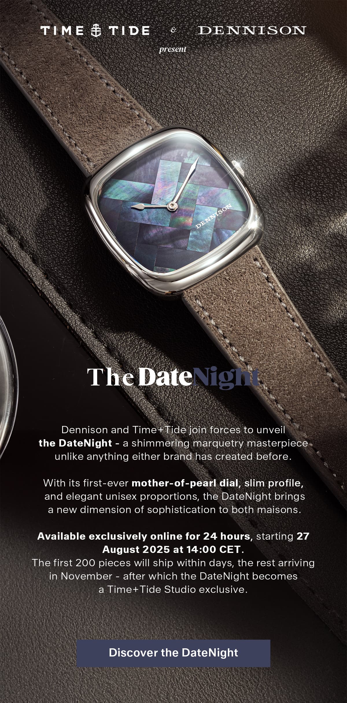 Het is ook het ‘jaar’ van parelmoer, duidelijk… Dennison blijft niet achter. Het was een goede beslissing het logo niet op de wijzerplaat te hebben bij de vorige speciale editie. Dat zijn ze nu alweer vergeten.