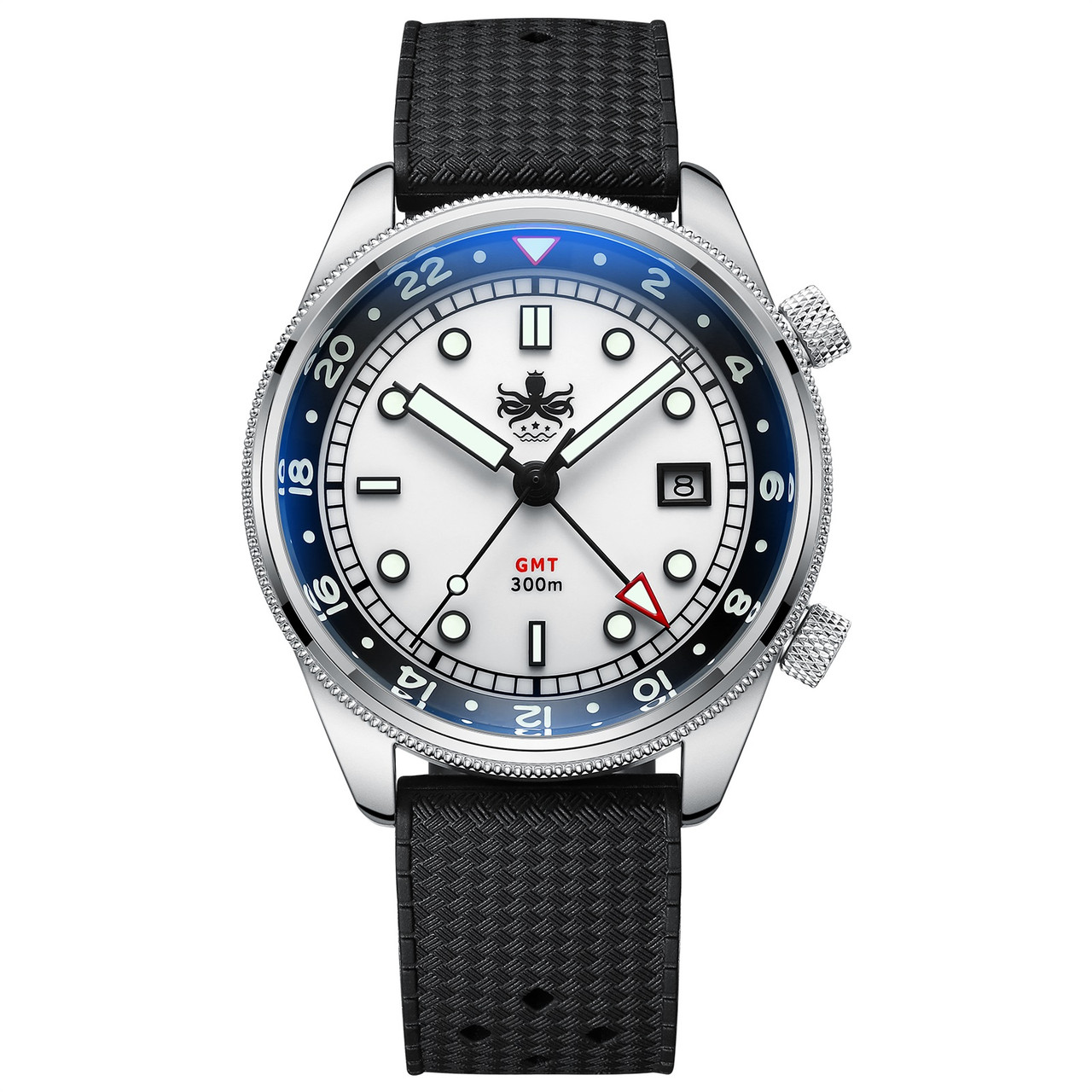 Het belangrijkste was mijn afkeer tegen automaten in een GMT, maar het uiterlijk deed ‘t ‘m ook niet voor mij. Zeker mooi gemaakt, strakke witte wijzerplaat met opgelegde indices en de vorm van de wijzers zorgvuldig dezelfde vorm als de indices. De contrasterende GMT-hand, echt netjes. Maar het totaalplaatje paste simpelweg niet bij me.