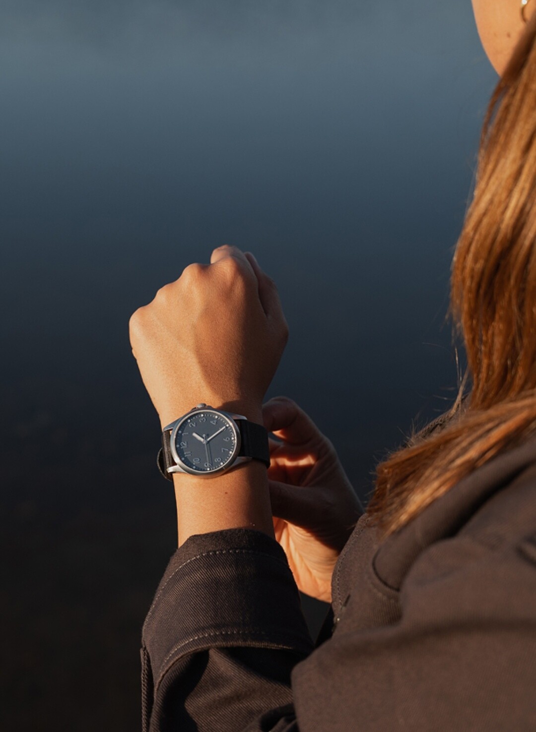 Super elementair design heeft plaatsgemaakt voor beter functionerend utilitarisme in de Radiant die in drie maten komt: 32, 37 en 40mm. Mudita’s ontwerptaal doet me nog steeds een beetje denken aan Braun, maar ik kan er toch niet over uit of ze saaiig voldoende interessant hebben gemaakt. De varianten met geborsteld stalen indices lijken een tikkeltje flets. Juist zwart omlijnd komt er dankzij contrast iets meer leven in. Volgens Watchyawant is het borstelen wel uitstekend uitgevoerd, en ik weet niet of je dat effect zal missen in zwart (immer ook het zwart kan nog geborsteld zijn). Hier geen SW300 maar een SW200 elaboré. Mudita’s gelooft duidelijk in kwaliteitscomponenten en productie. Ik voel sympathie, maar niet gelijk hebzucht.