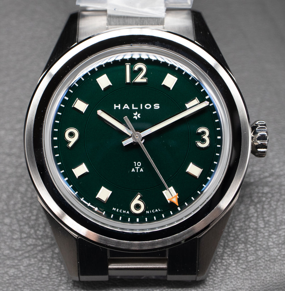 De Monta komt niet in de buurt qua prijs en heeft ook de kleuren niet. De Halios lijkt maar niet beschikbaar te komen en is ook duurder. Die had als handwinder ooit wel een gelijkende groen in de LE met Huckberry (zie hieronder). De Beaucroft heeft een in mijn beleving minder aantrekkelijk blauwer groen. Het is misschien het meest direct tegen de Commuter af te zetten in prijs en specs. Wel hebben alle genoemden het voordeel niet zo duidelijk aan een iconische inspiratiebron te zijn gelinkt. De Halios is meer mijn stijl, maar ik verwacht geen prijs onder de 1000USD als die eindelijk nog eens beschikbaar komt met een SW300 en dan effectief ook kan worden besteld zonder fratsen. Mijn kanttekening is het zijaanzicht en die wat lange poten, die ongemakkelijker ogen. De Beaucroft jaagt een sportievere eerder dan klassieke stijl na, en hoewel ik het waarderen kan, zie ik het mezelf minder snel dragen. Ten opzichte van beiden is formaat ook een voordeel voor de Traska, want met een klassiek silhouette in 36mm onder 11mm dik is die waarschijnlijk het fijnst draagbaar voor alledag. Zo bereik je dus een vergelijkbare conclusie als vele reviewers voor mij.