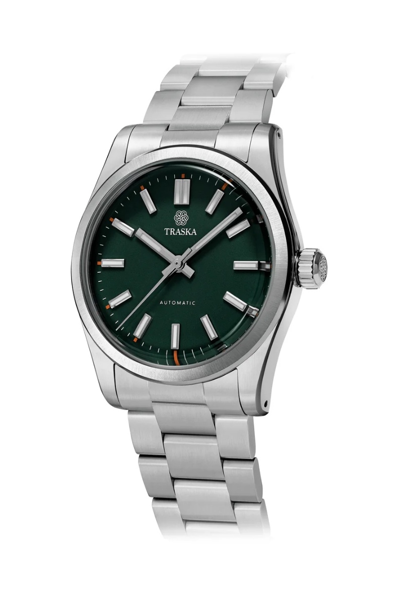 Maen kan ook heel mooi klassiek geïnspireerde dingen maken. Ik zou ook zeggen meestal met een duidelijker eigen smoel dan Traska dat doet. Dat is eigenlijk toch ook meteen mijn voornaamste kritiek bij de Commuter. Uiteindelijk is dit een mix van de groene OP34 en OP36 (ik weet niet of beide groene modellen nog courant zijn). Ook dat fijne oranje accent komt toch van Rolex. Nu vind ik dat kroontje, ook op die plek niet eens zo mooi als Traska’s logo, maar betaal je wat 10x zoveel voor een kroontje.