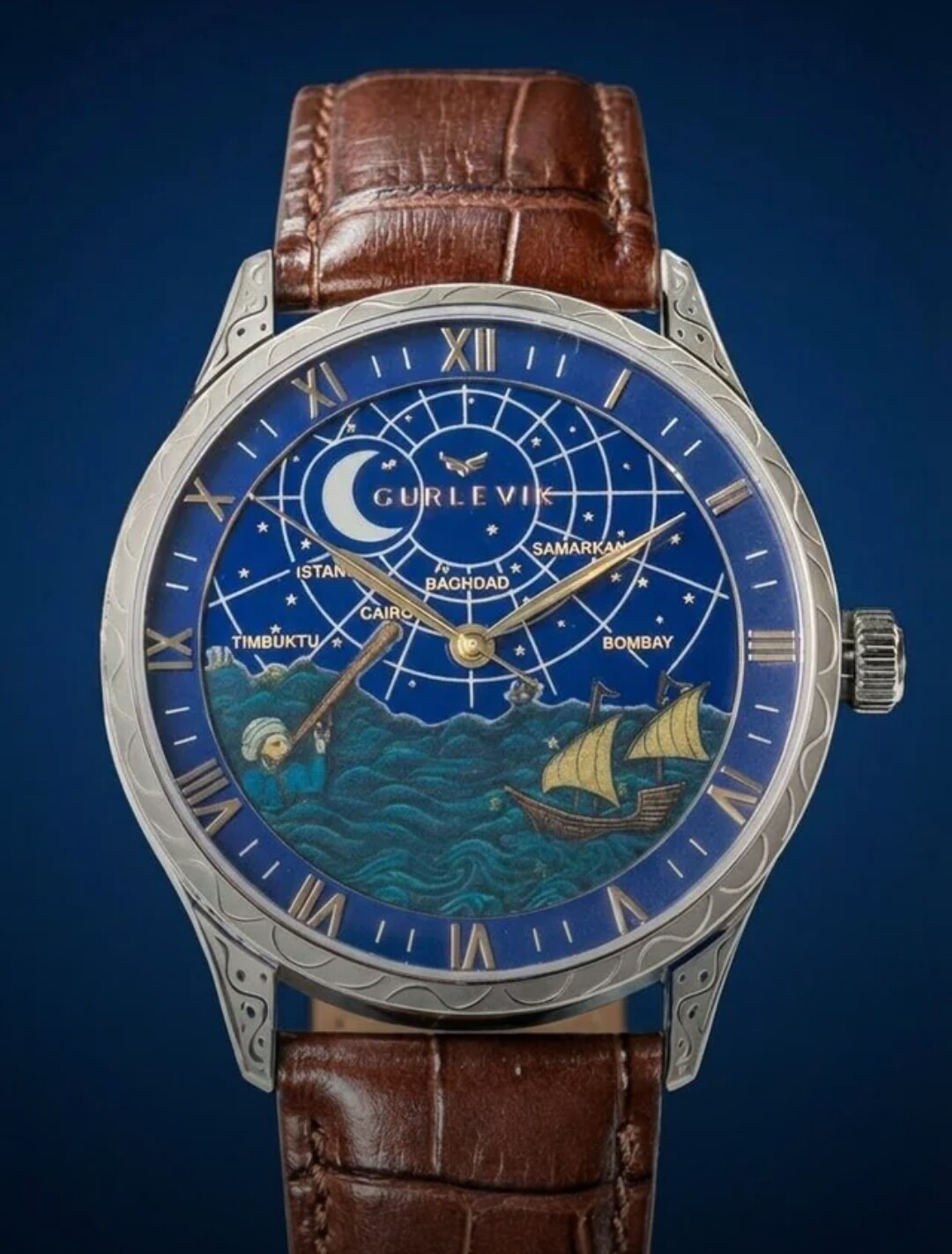 De eerste mij bekende (als ik het me goed herinner) Turkse microbrand: Gurlevik. Het is wat stijl en ontwerp betreft totaal niet aan mij besteed. Me dunkt Miyota 8 series om de kosten met onder 300 dollar te houden. Voor mensen die van het thema houden misschien een leuk optie.