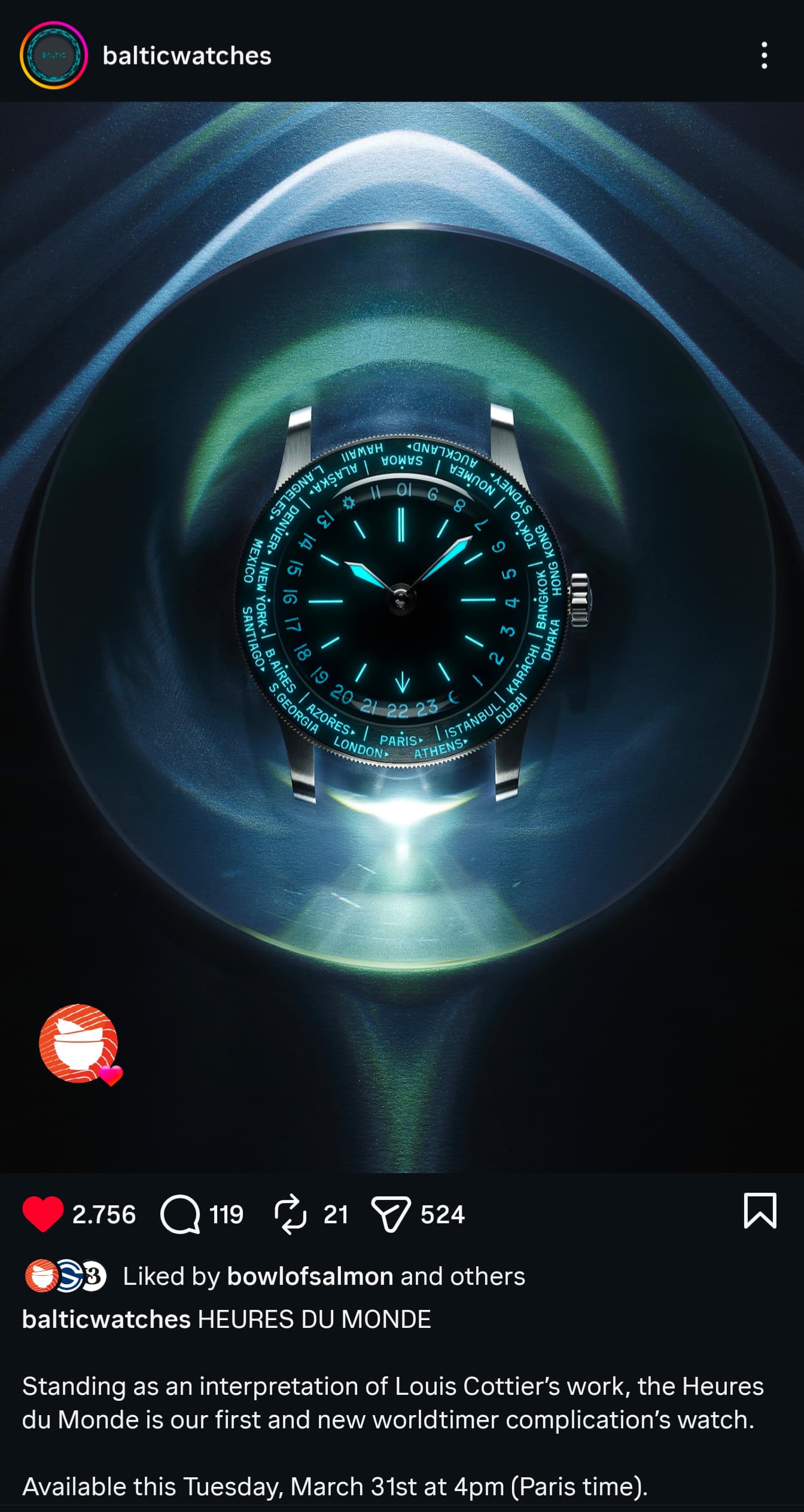 Kan eindelijk posten. Had een prototype van deze world timer om mijn pols en in handen gehad toen ik vorige maand in London bij de Baltic Watches showroom was.