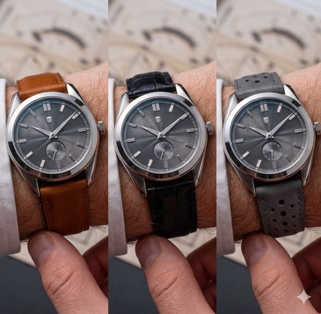 Knap dat dit horloge het op de site voor elkaar krijgt om met geen enkele band, ook niet de leren, goed voor de dag te komen. Terwijl ik me voor kan stellen dat hier heel veel wél mooi op zou kunnen staan. 8mm dik, echt goeie afmetingen en prachtige kast!