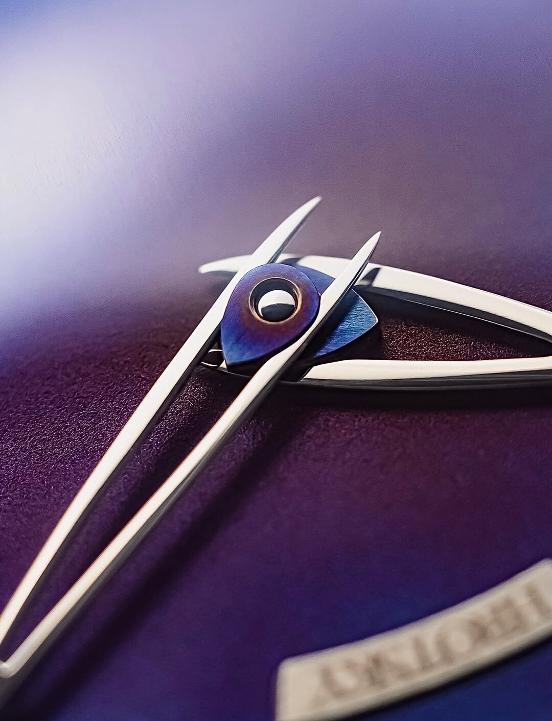 Hrotsky lanceert een paar pincetten op een gekleurd oppervlak, voor een schamele 2500USD, toch wat bijzonders.