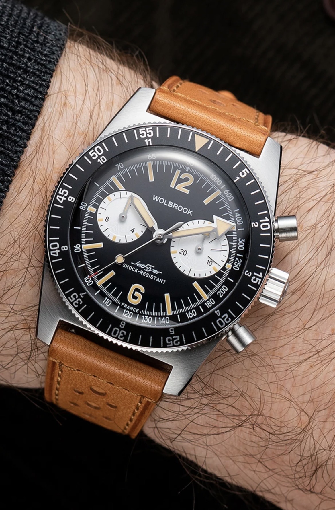 Ik lees dit wel “At the heart of the JetFlyer® Automatic Chronograph is the Jeambrun PS 6402 — a modern column wheel chronograph movement built on a proven architecture.”