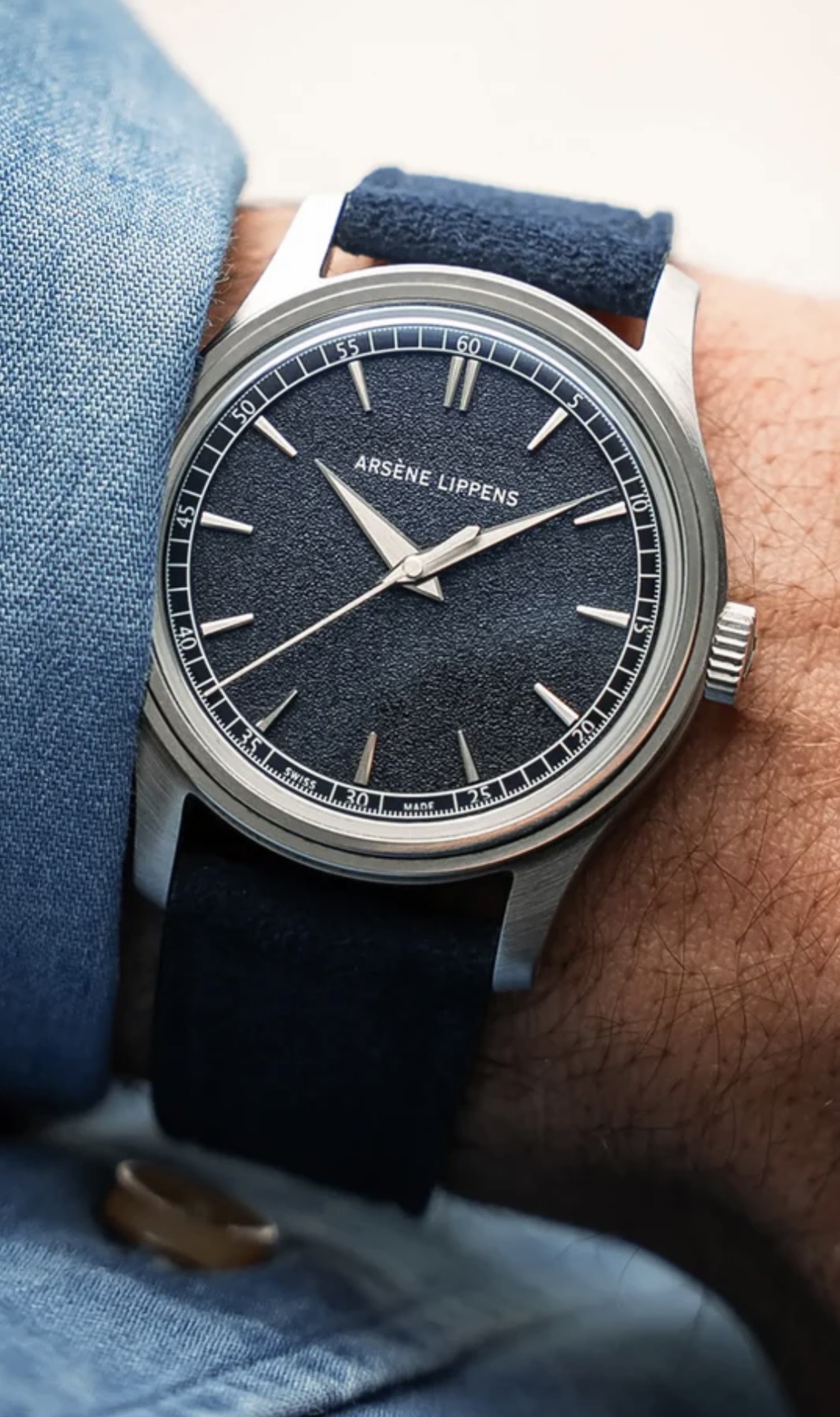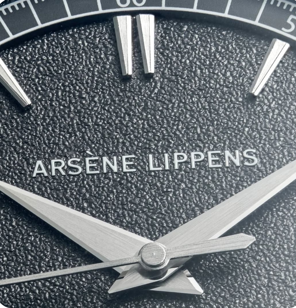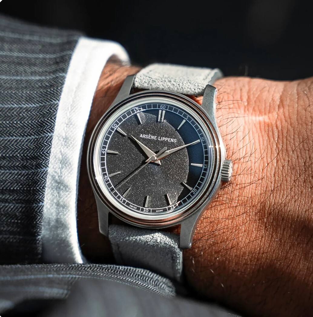 Arsène Lippens. Een horloge waarvan ik eigenlijk zou willen dat het me meer zou grijpen. Het is simpel en best elegant op een utilitaire wijze. Vooral de wijzers en gefacetteerde indices vind ik fraai. Het textuur the is netjes, maar glimt misschien iets teveel en heb ik inmiddels ook wel veel zien langskomen. Er blijft een beetje het gevoel hangen van waarom zou dit me nu echt bijblijven? En is de prijs niet wat hoog als er in de uitvoering verder niets bijzonders wordt geboden?