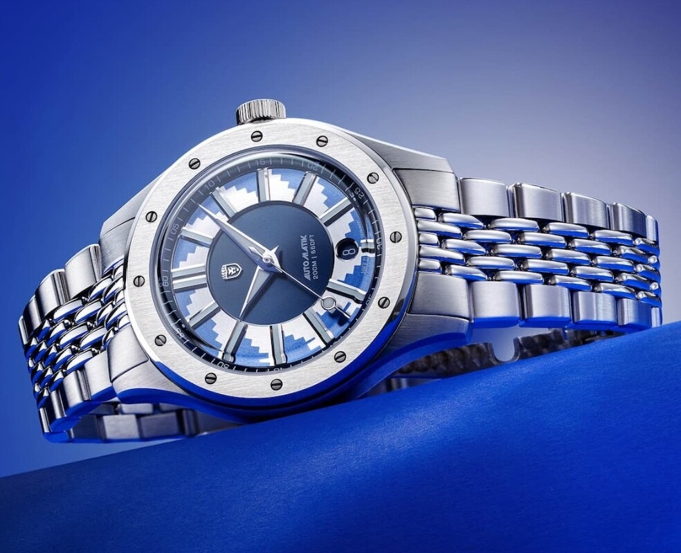 Juist bij de gouden ben ik nog bijna bereid te vergeven. Bij de blauwe is het hogere contrast met de sundial juist meer in het oog springend. Bovendien, die stalen band heeft mijn voorkeur niet. Ik vind het wat grof voor het detail in de case.