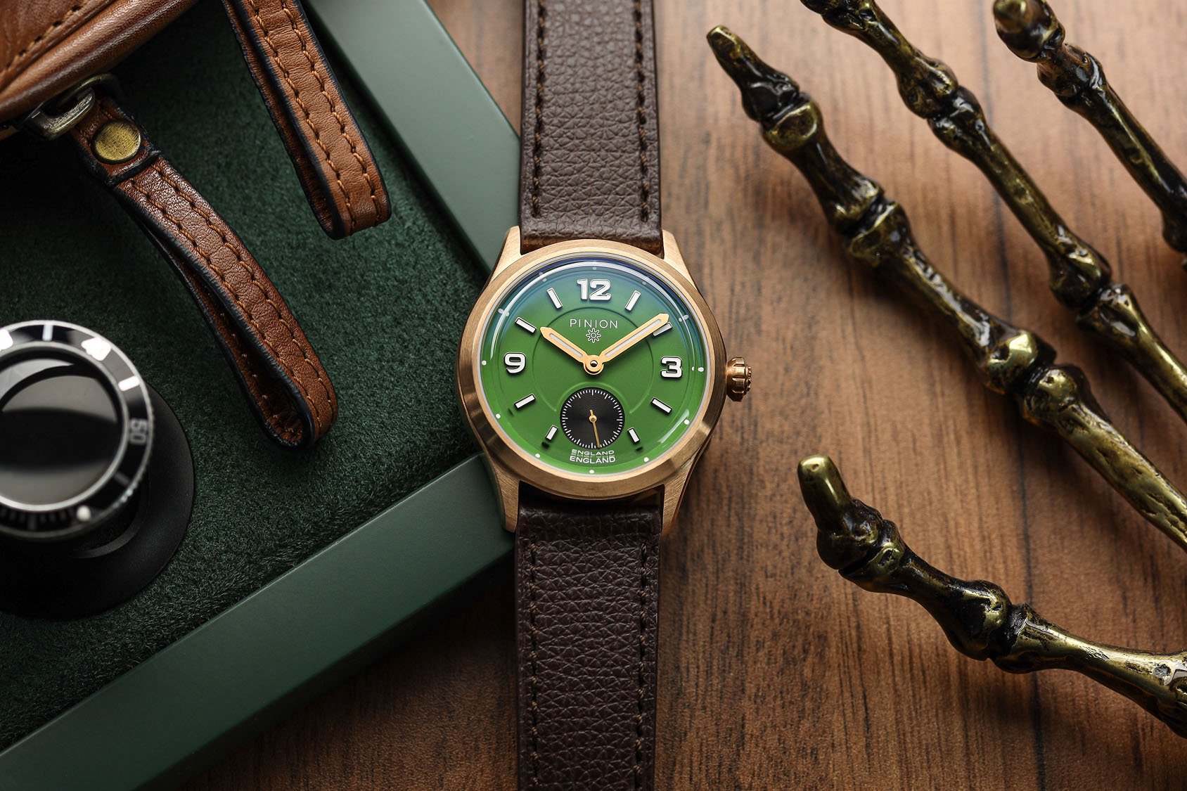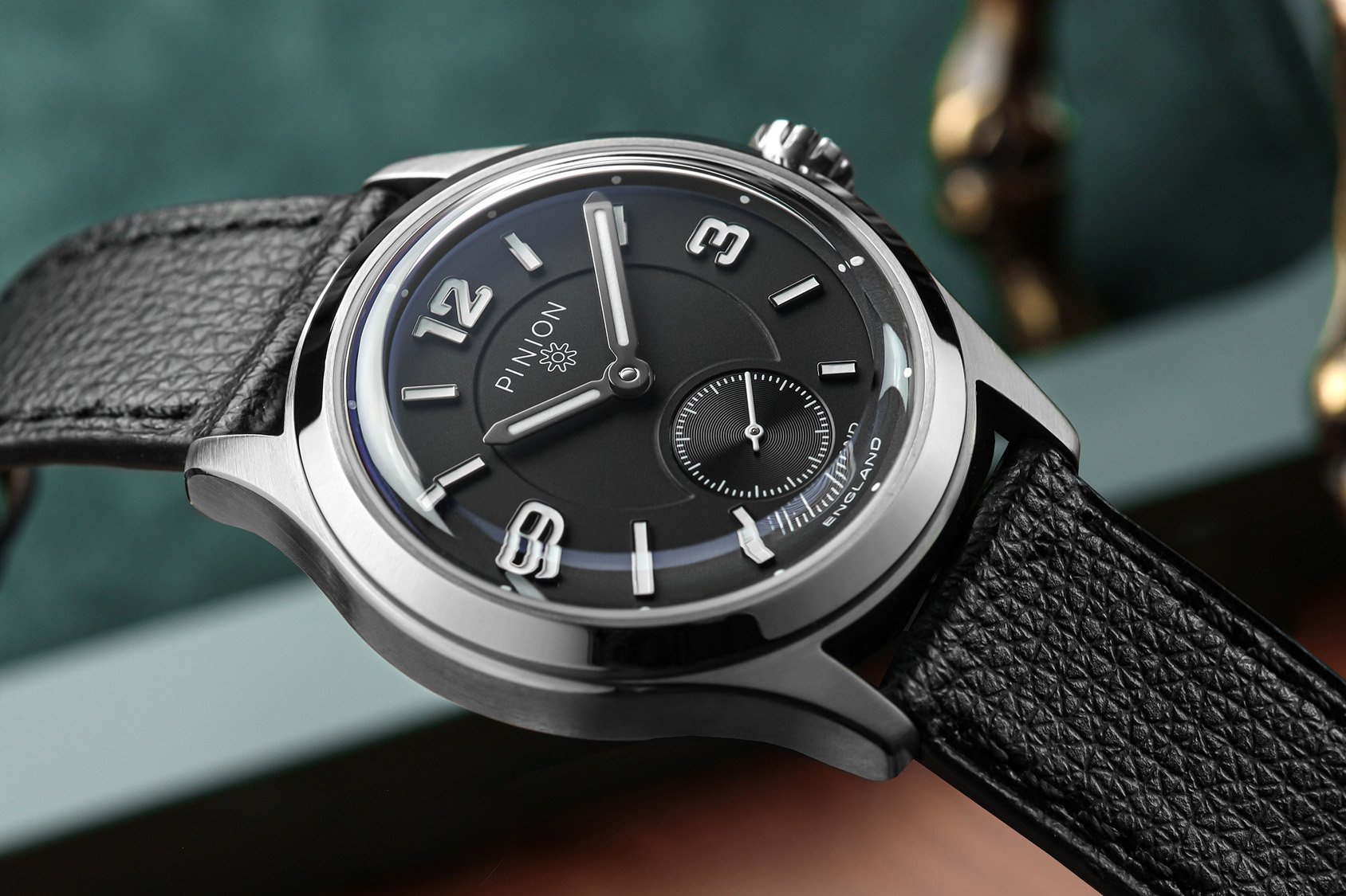 Pinion Pure 38. Handgewonden, toch nog 11mm dik (doe dan een automaat), en met 1350GBP voor een SW261 ambitieus geprijsd.
