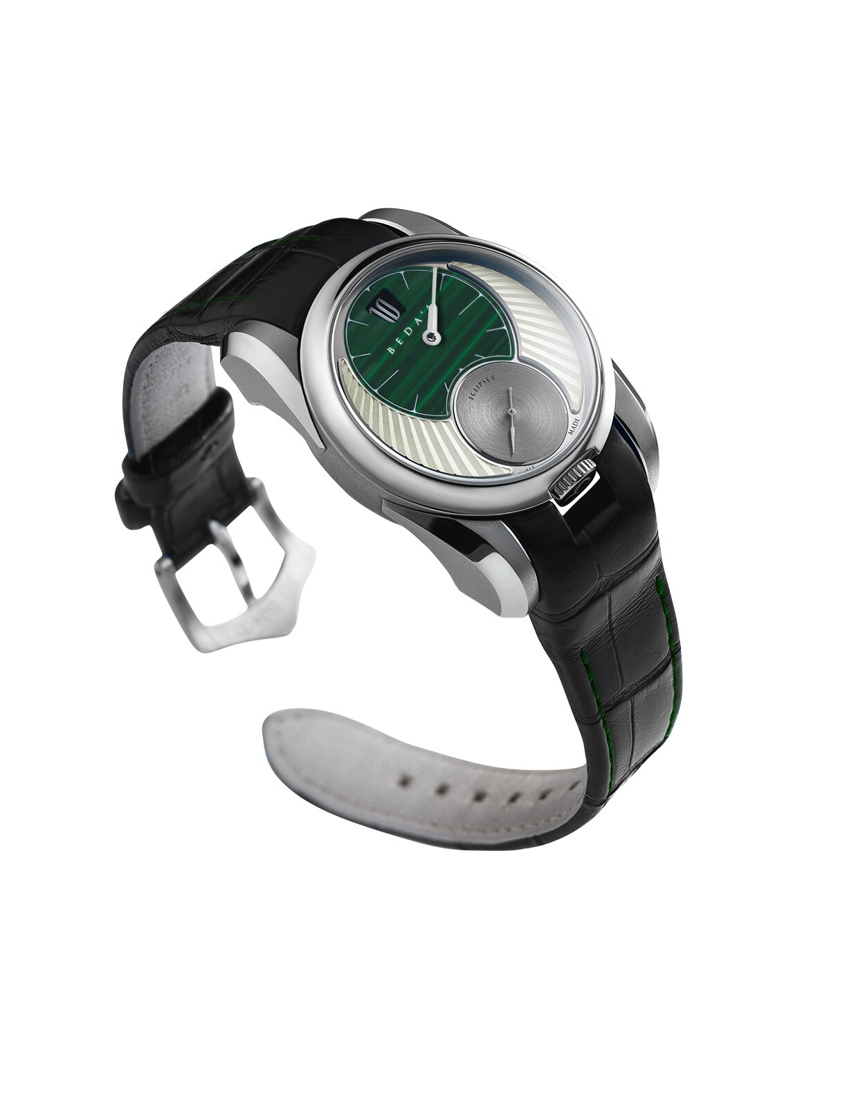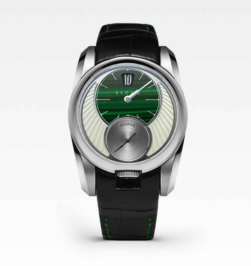 Beda’a Eclipse II. Merken zijn constant bezig relevant te blijven en heel regelmatig is dat geheel niet nodig. De ontwerpen die in eerste instantie waren gerealiseerd blijven aantrekkelijk, maar vanwege strategische beslissingen onbeschikbaar. Deze Malachiet versie is natuurlijk netjes uitgevoerd, maar geeft de Eclipse wat mij betreft een rommelige indruk die de eerste varianten niet hadden. Jammer. Bovendien is hij extra duur gemaakt.