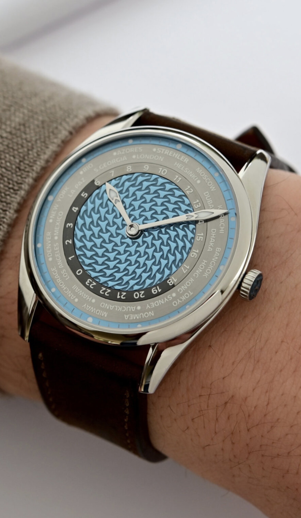 Heinrich komt met een nieuwe Helicoprion Buzzsaw. Nu eindelijk in de 10,5mm dik die het altijd het moeten zijn als je het mij vraagt. Vreemd genoeg is hij toch niet kleiner geworden, maar een 0,5mm gegroeid. Dat vind ik dat wel weer spijtig. Had 'm 38mm of minder gemaakt en ik zou echt zitten kriebelen. Ik blijf twijfelen of grote horloges nog wel wat voor mij zijn. Dat gezegd, omdat de bezelpartij uitgebreid is, zou het zomaar wat minder groot kunnen dragen. Ik ga vermoedelijk eerst maar eens afwachten of er weer een Carnelian komt.