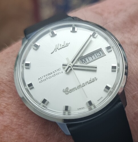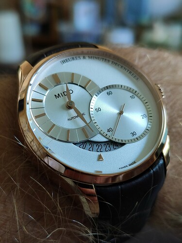 Mijn eerste Mido, vers van de post! Eerste indruk is erg positief, de AR coating is veel beter dan ik gewend ben, en natuurlijk een ‘true gmt’. Het bandje is nog wel wat stijf, hopelijk wordt die nog soepeler.