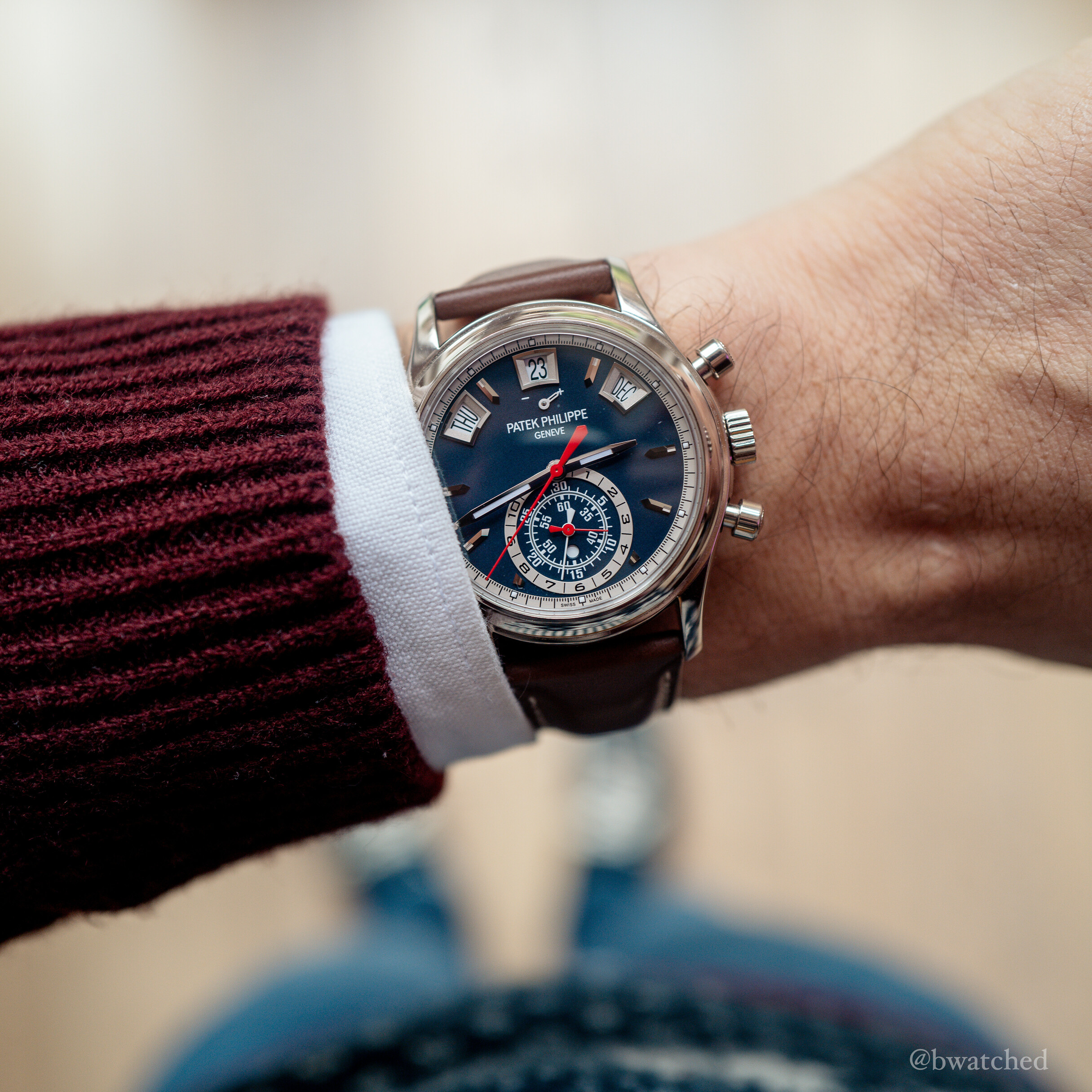 Het gaat om een Patek Philippe Annual Calendar Flyback Chronograph ref 5960g, een model uit de complication serie en één van de meest gecompliceerde modellen uit de reeks, sterker nog, qua uurwerk-componenten (daar komen we zo op) is dit horloge gecompliceerder dan de meeste horloges uit de Grand Complication reeks.