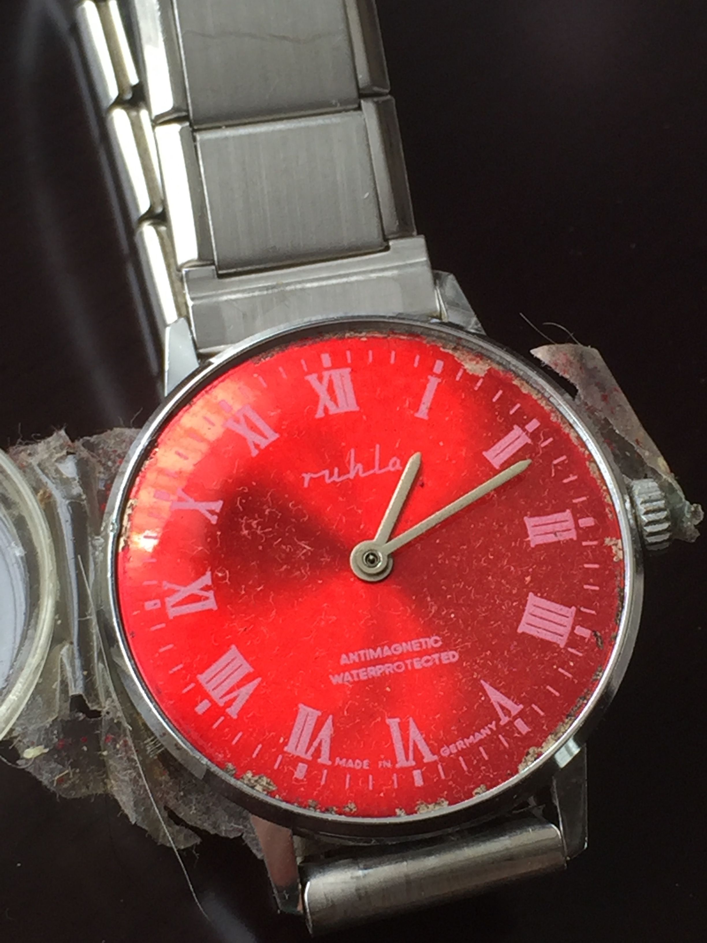 Ik zal een jaar of 6 zijn geweest toen ik mijn eerste (echte) horloge kreeg. Als kind was ik wezenloos van de rode wijzerplaat en ik droeg het onafgebroken. Een Ruhla, met Romeinse cijfers. Kortom, ik leerde snel Romeinse cijfers lezen. Een simpele handwinder, maar het getik bleef mij boeien.