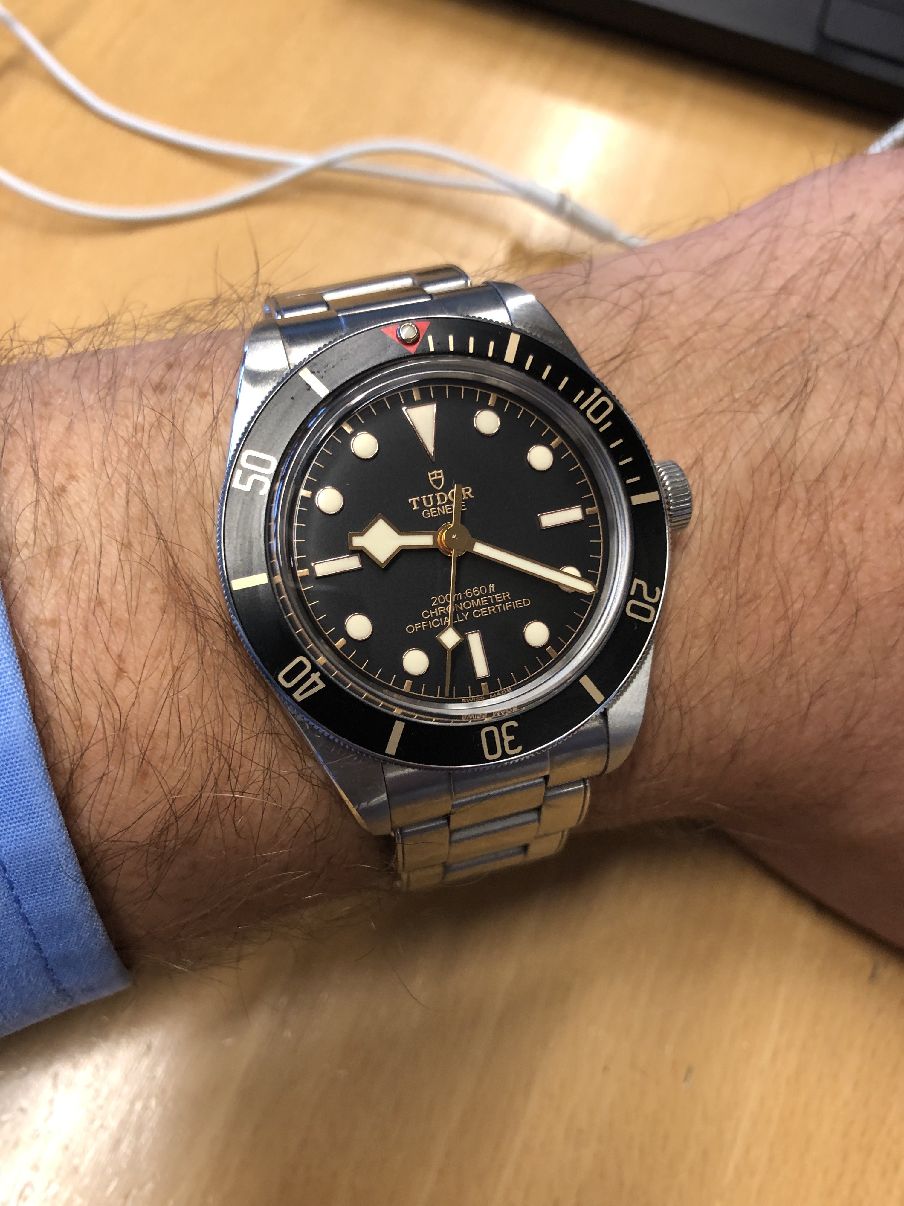 Mooi horloge deze Tudor! Zelf heb ik horloges van 34 tot en met 43 mm, het ligt helemaal aan het model en niet aan de maat hoe een horloge uit valt. Ik heb bijvoorbeeld een 40 mm Claude Bernard, deze voelt groter dan m’n Hamilton van 43 mm.