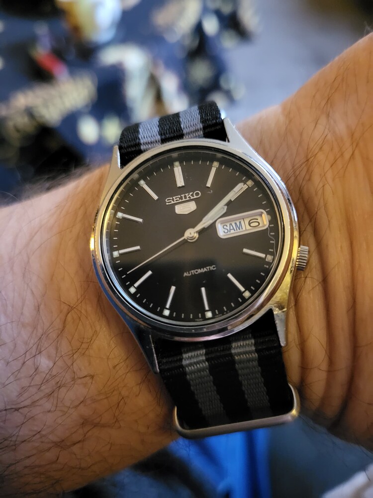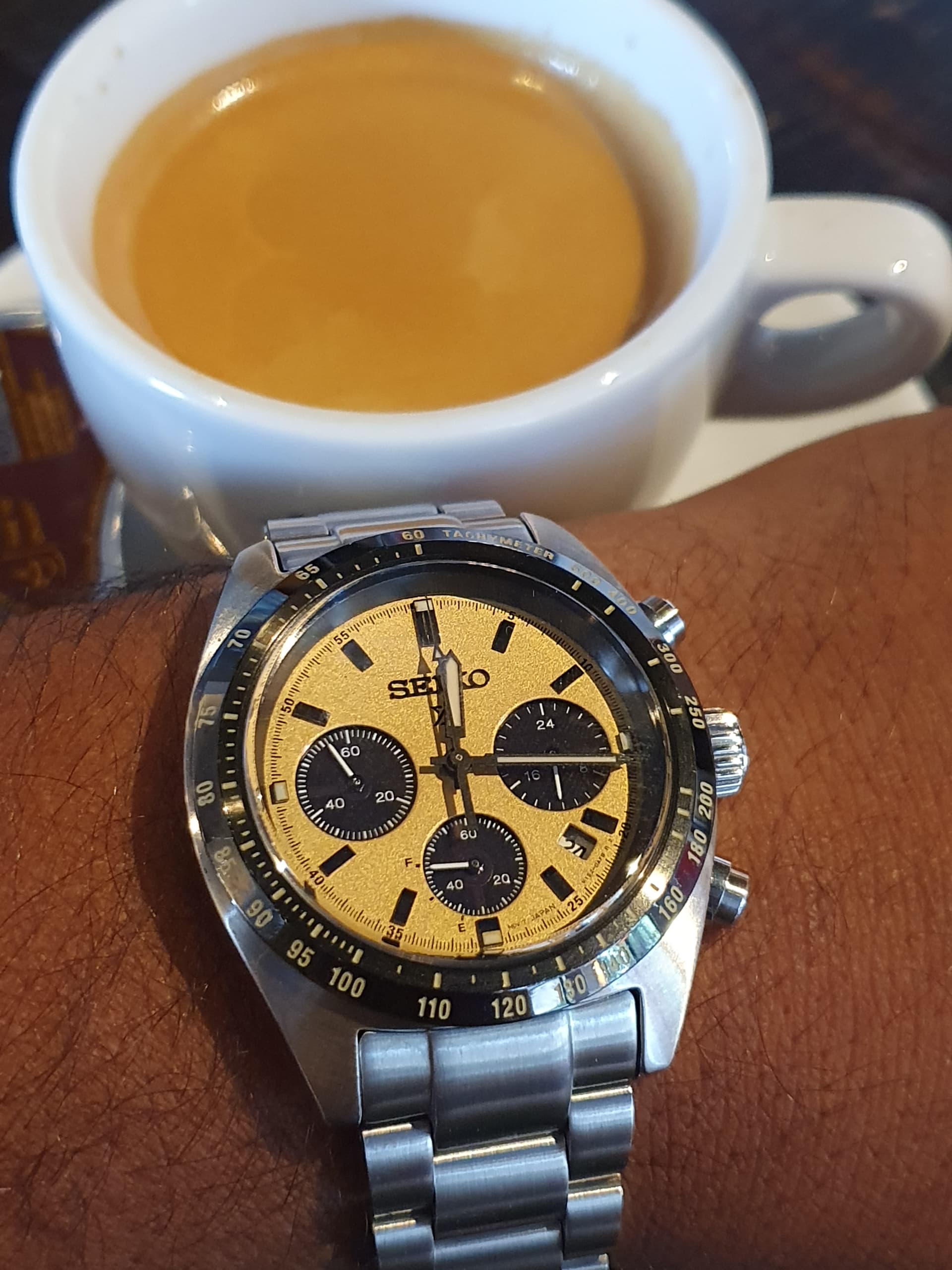 Als het er maar één mag zijn, dan bij nader inzien toch deze…ik draag deze sinds Zijn Komst, gelijk de Messias, maar dan via Marktplaats ipv over het meer van Galilea, (oeps, toch iets te veel Negroni? Ach, het is zaterdag) vaker dan alle andere horloges bij elkaar!