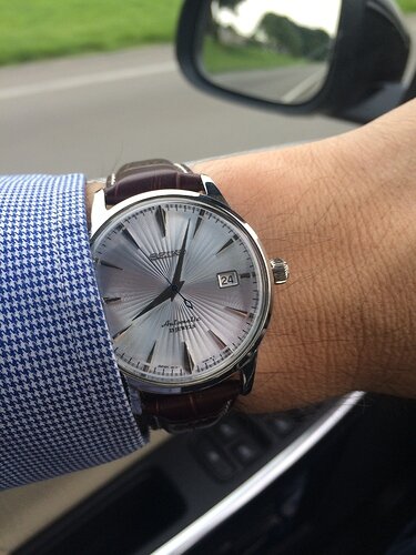 En oh oh oh, wat is 'ie mooi in het echt! Technische specs is één ding, maar emotie is nog zoveel belangrijker. Een horloge moet gewoon goed ‘voelen’ als je 'm omdoet, het gevoel dat dat je steeds even de mouw van je overhemd omhoog doet voor een ‘quick glimpse’ ;). Zelfs mijn vrouw vind hem mooi en dat ze heeft ze nog nooit uit haarzelf gezegd over bijvoorbeeld mijn Oris Aquis en andere gewaardeerde klokjes. Als ‘de directie’ het mooi vindt is dat toch een pluspuntje, hahaha.
