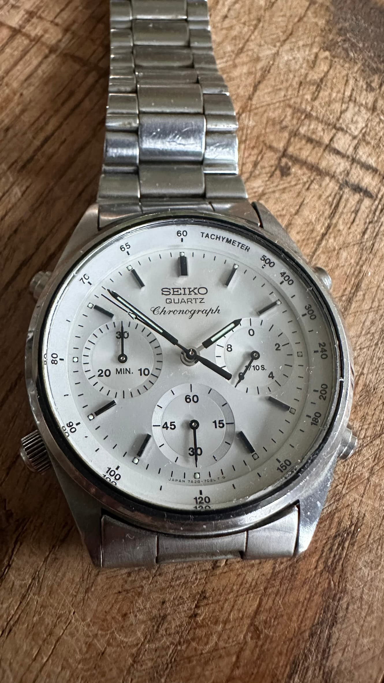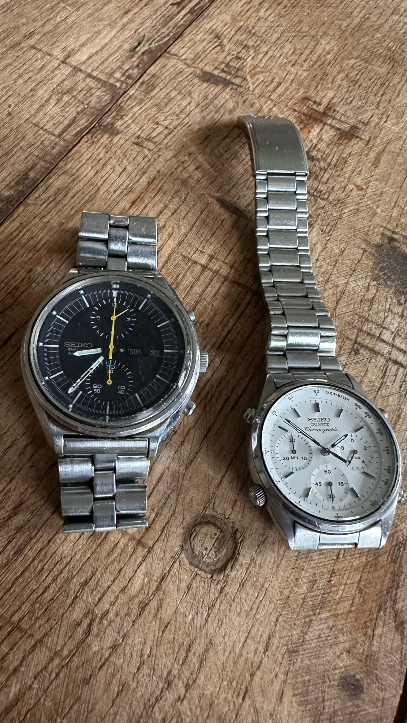 Recent waren wij oude verhuis dozen aan het opruimen en toen kwam ik 3 Seiko’s tegen waar ik niet meer van wist waar ik ze gelaten had. Ook die oude Casio 943 BM-500W dus… De Casio band en deels de band van de Message Watch vielen direct in brokstukjes uit elkaar. Geheel vergaan, de weekmakers waren op in 't materiaal denk ik. Mijn zelf gekochte Seiko 7A38-7060 Quartz (ik denk in 1983) kwam ook bovenwater, deze ga ik toch weer proberen te dragen. Even kijken of ik hier minder last van heb m.b.t. de huid. Vroeger heb ik ze uiteraard altijd gedragen.