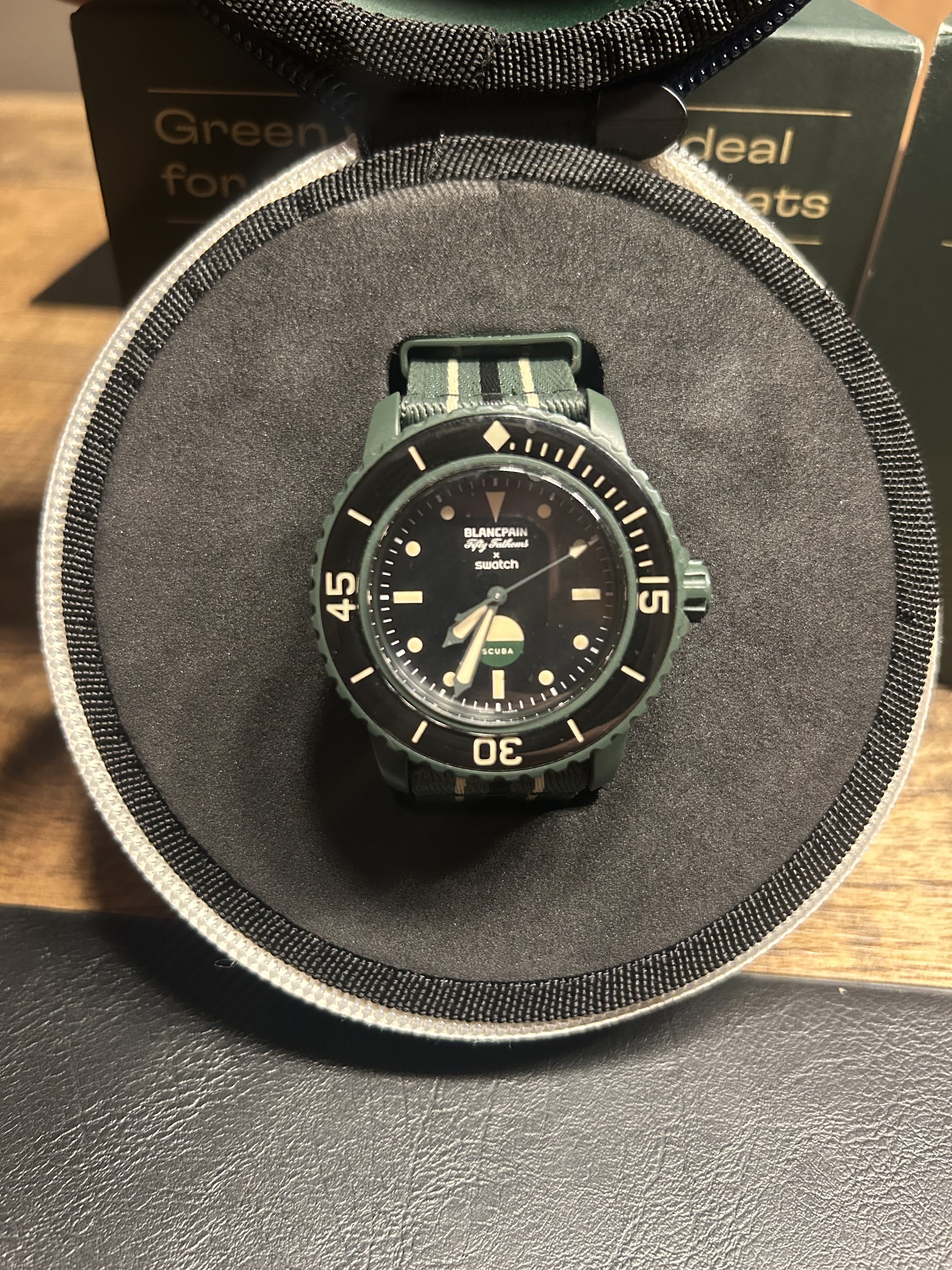 Momenteel is mijn dagelijks horloge een Green Abyss van Swatch