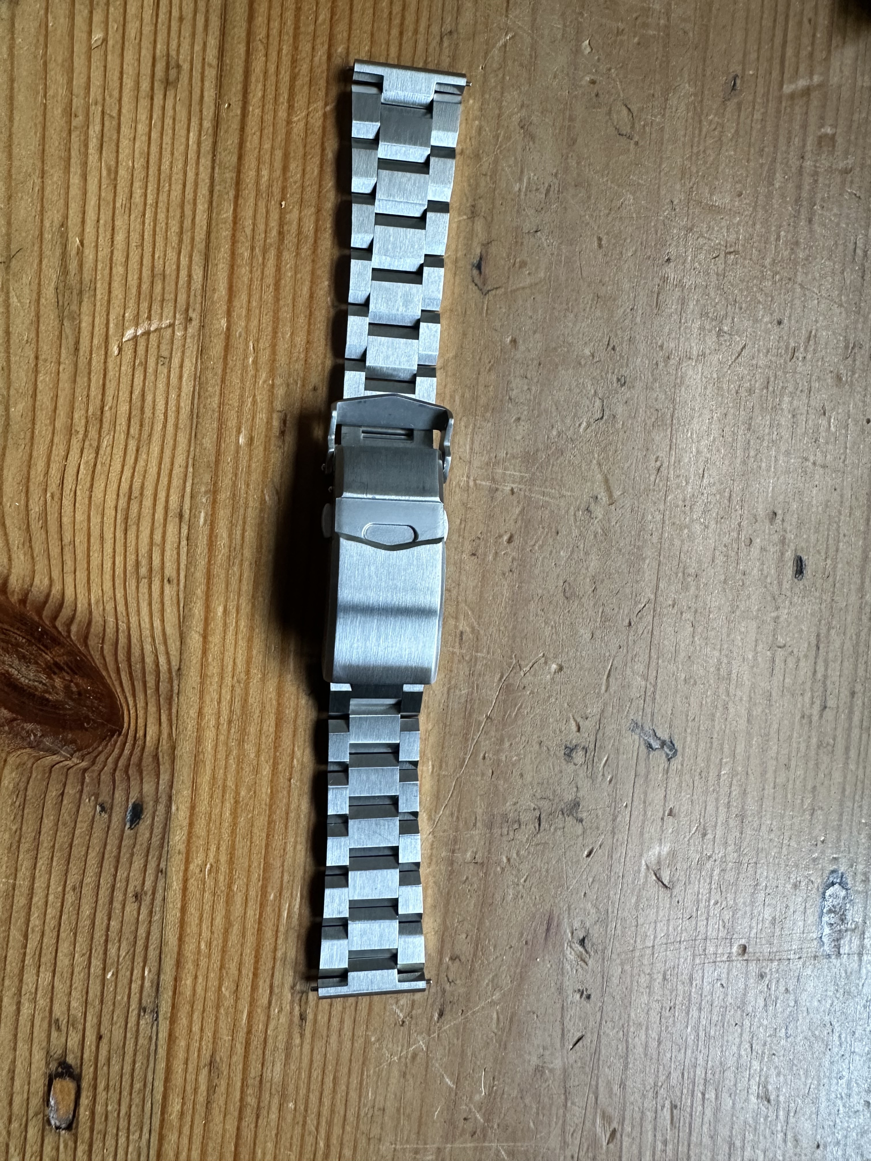 Hierbij bied ik een Miltat bracelet 19mm te koop aan. Is nooit gedragen en inmiddels is het horloge waarvoor het geschikt was niet meer in mijn bezit. Past o.a. op een Seiko SLA043. Lengte band in gesloten toestand 15,5 cm. Paste op een 40mm horloge met mijn 18cm polsomvang.