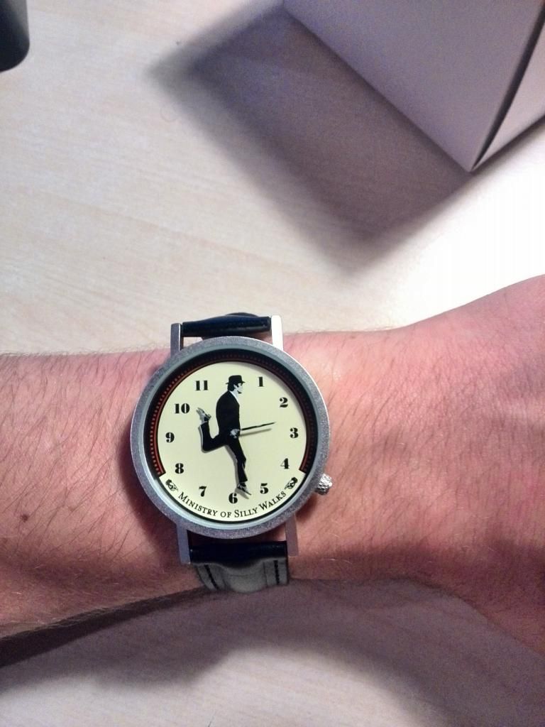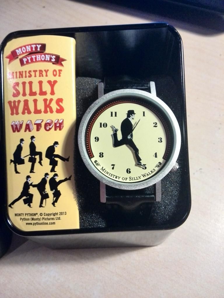 Vanmiddag zat er ook nog een ander horloge naast de vintage pierre laro duiker ( http://www.horlogeforum.nl/read.php?19,2508982,2509092#msg-2509092 ) in de post, namelijk het geweldige horloge van Monty Python’s sketch genaamd the ministry of silly walks. Het horloge is gemaakt door The Unemployed philosophers guild, en ik moet zeggen, ze hebben daar zeker humor!