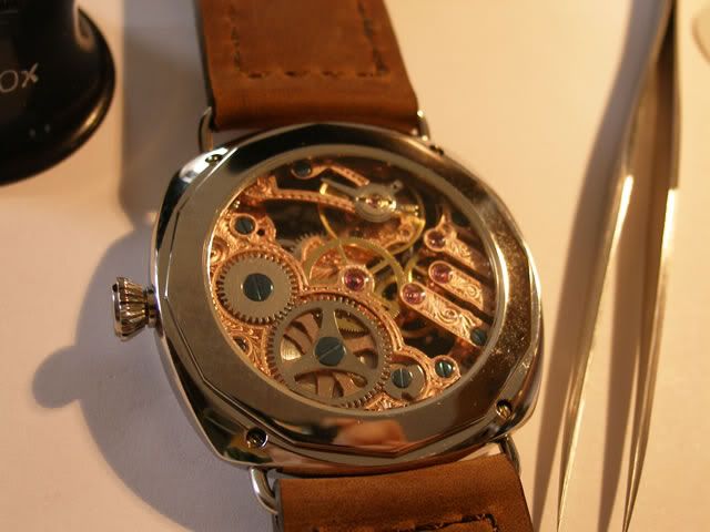 Maar we zijn eruit. Het wordt toch de Radiomir hommage van Parnis, maar met een skeleton uurwerk. Dus toch geen datumaanduiding meer. Want er bestaat ook een automaat hommage, maar ze vind het uurwerk niet mooi genoeg.