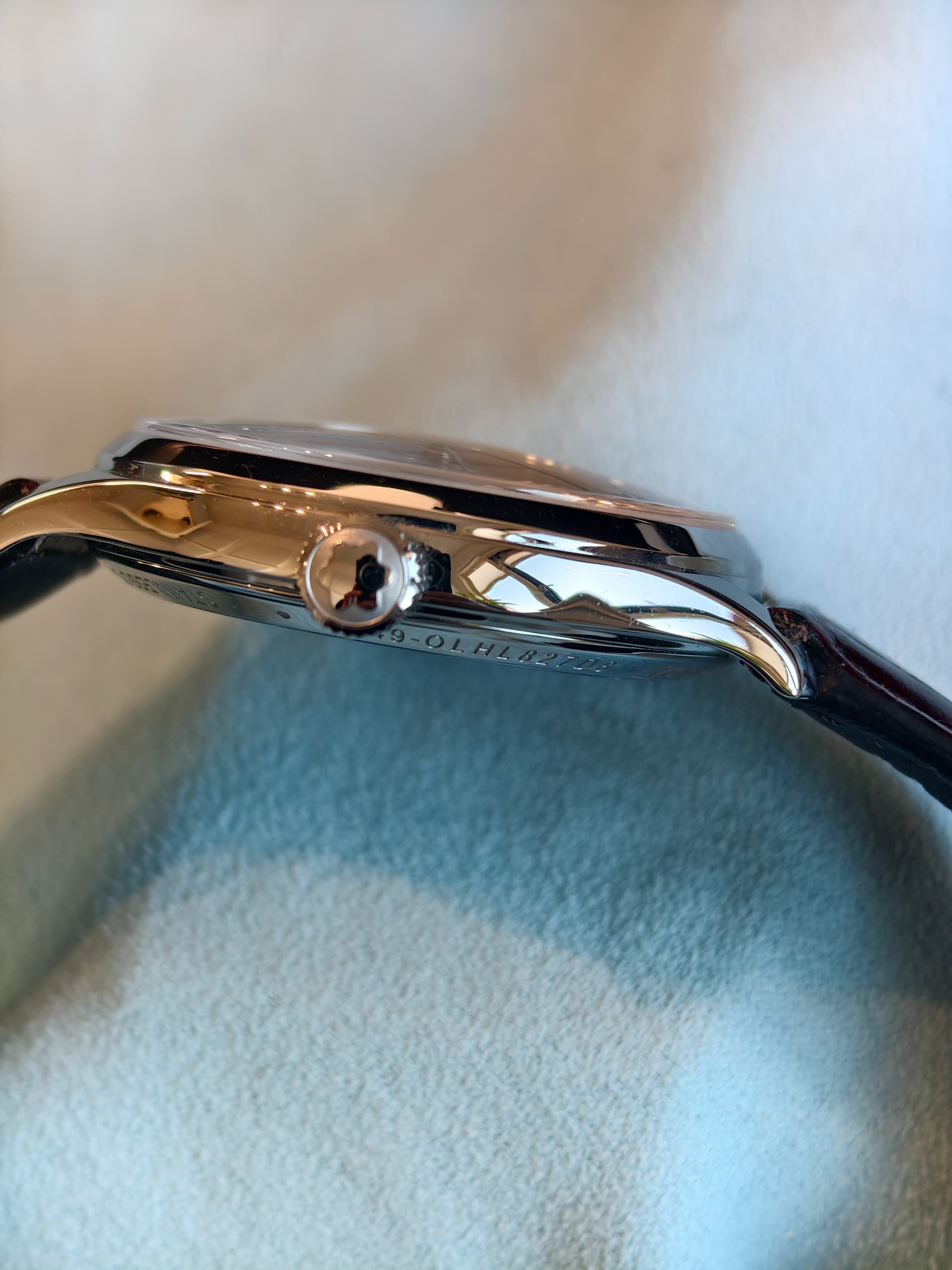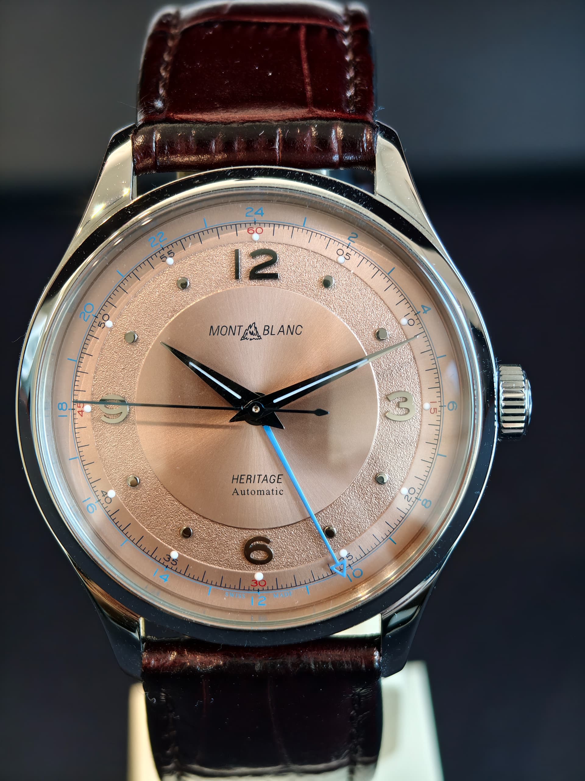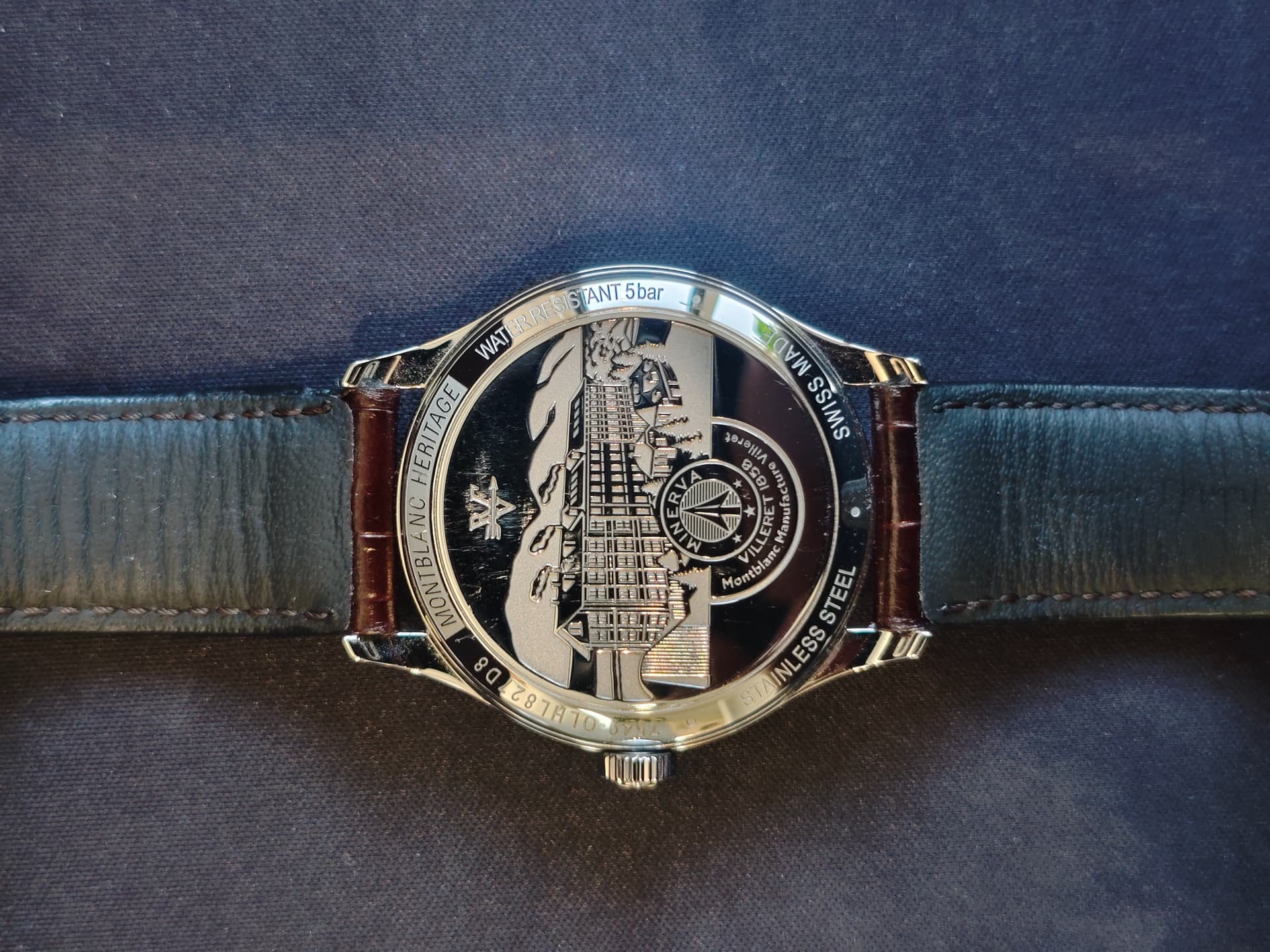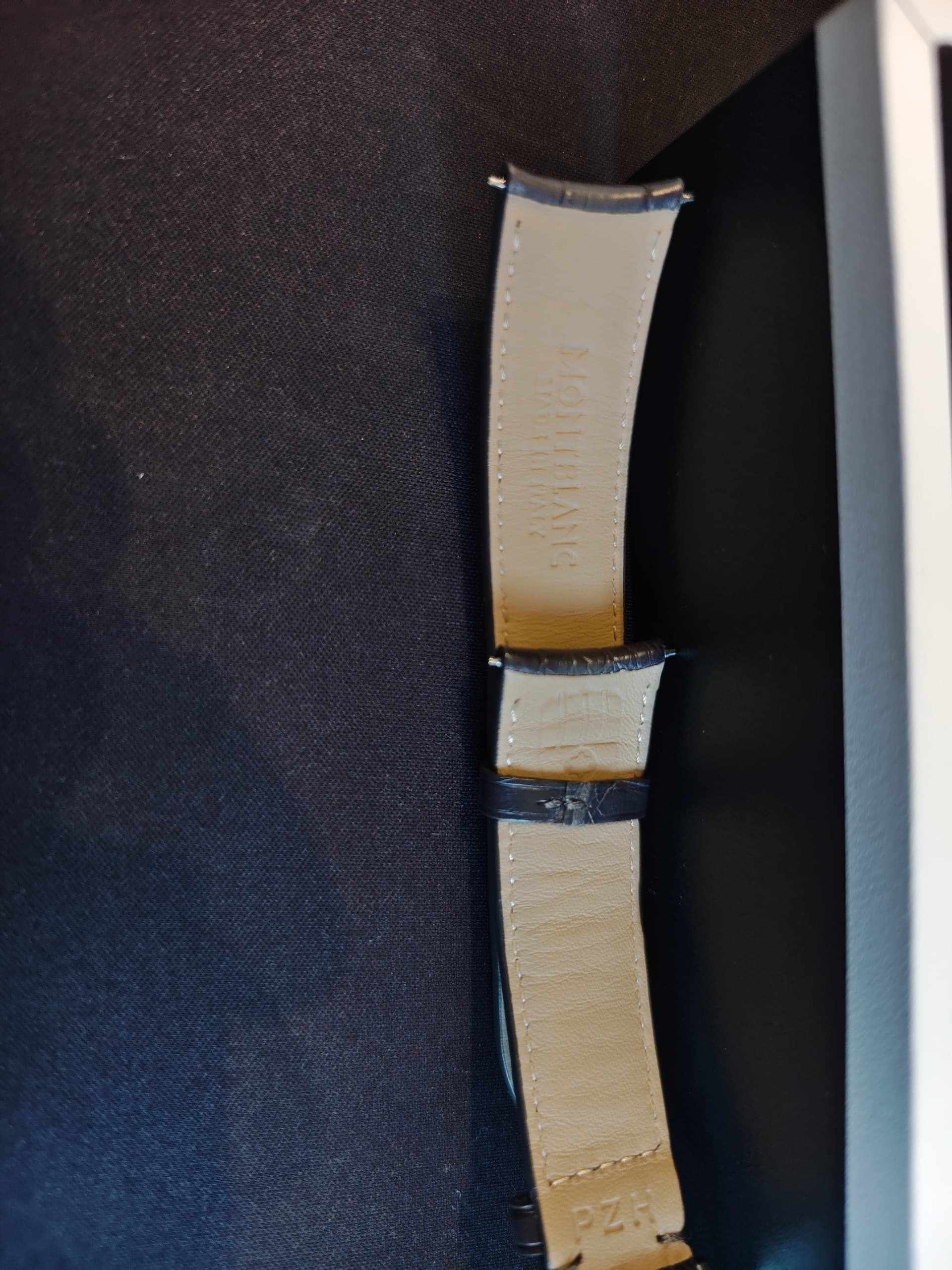 Originele doos en/of eventuele accessoires: Doos + papieren, originele montblanc leren bandje met extra alligator leren portofino bruin band