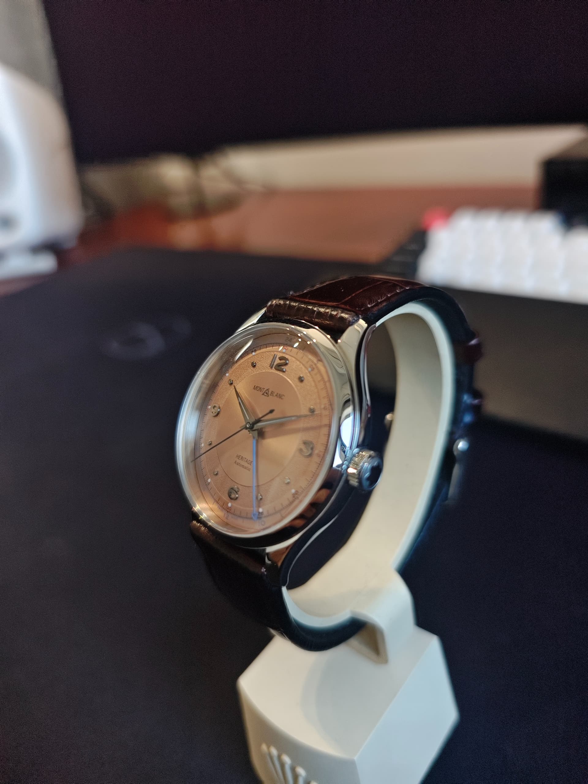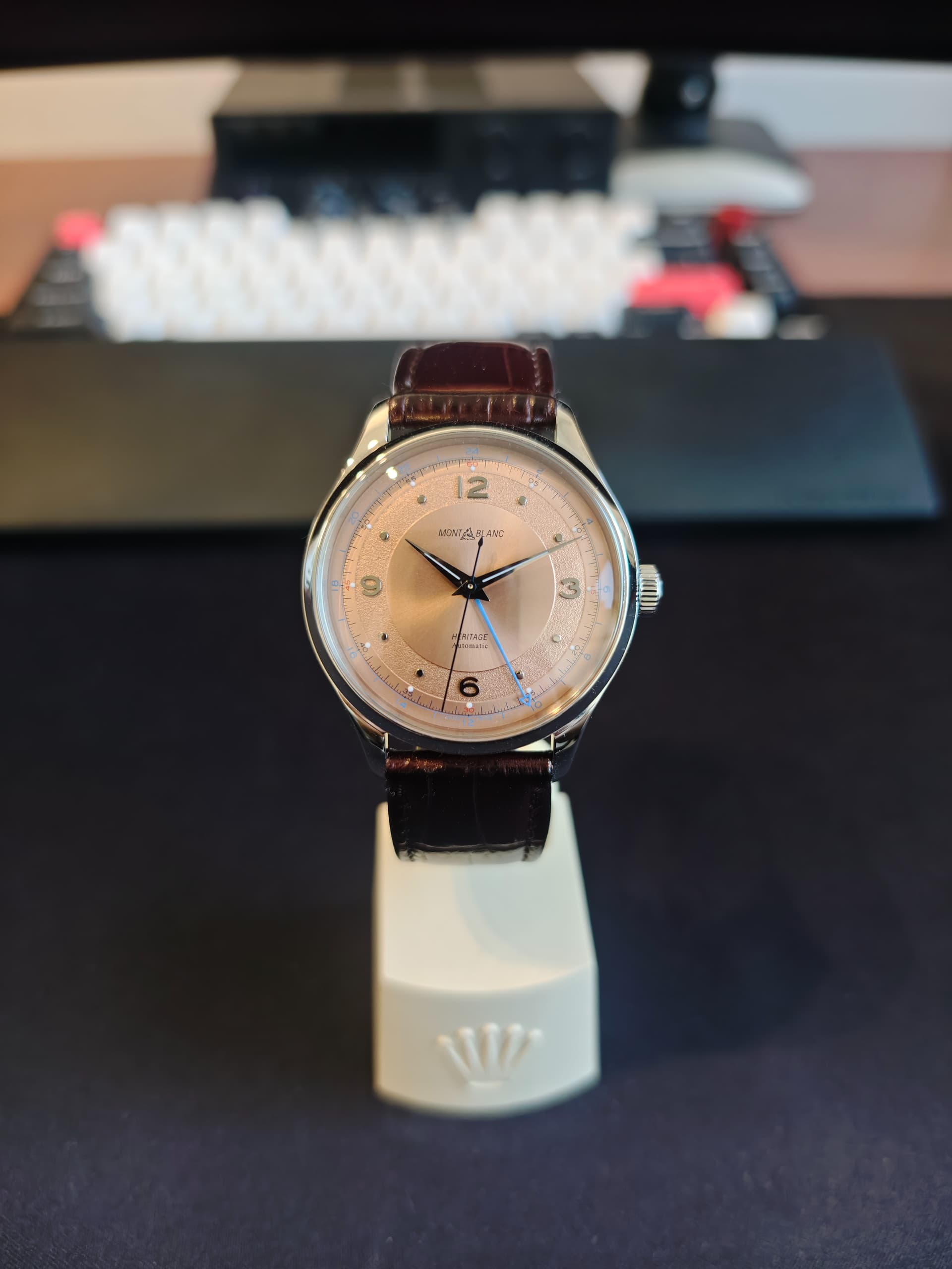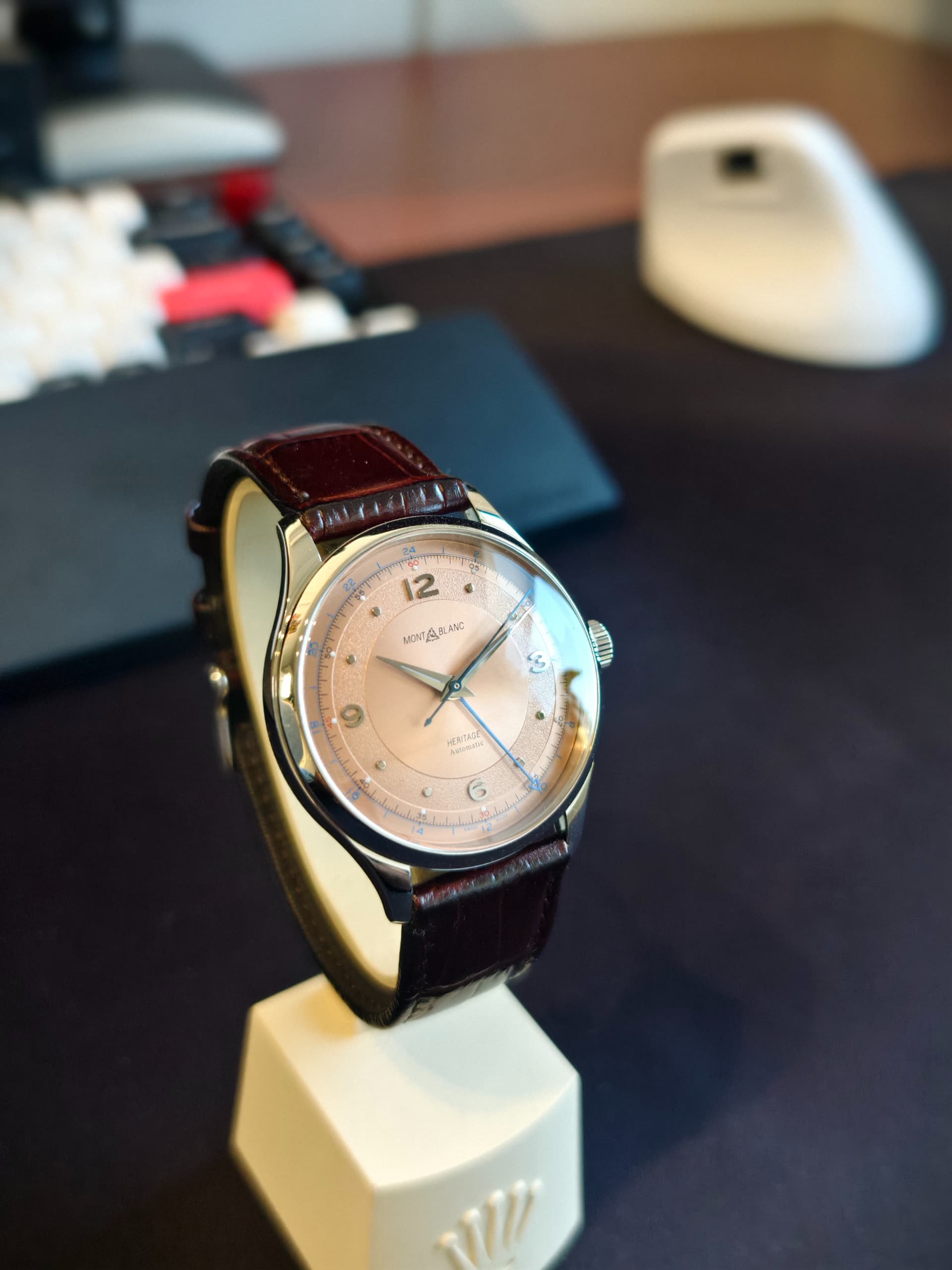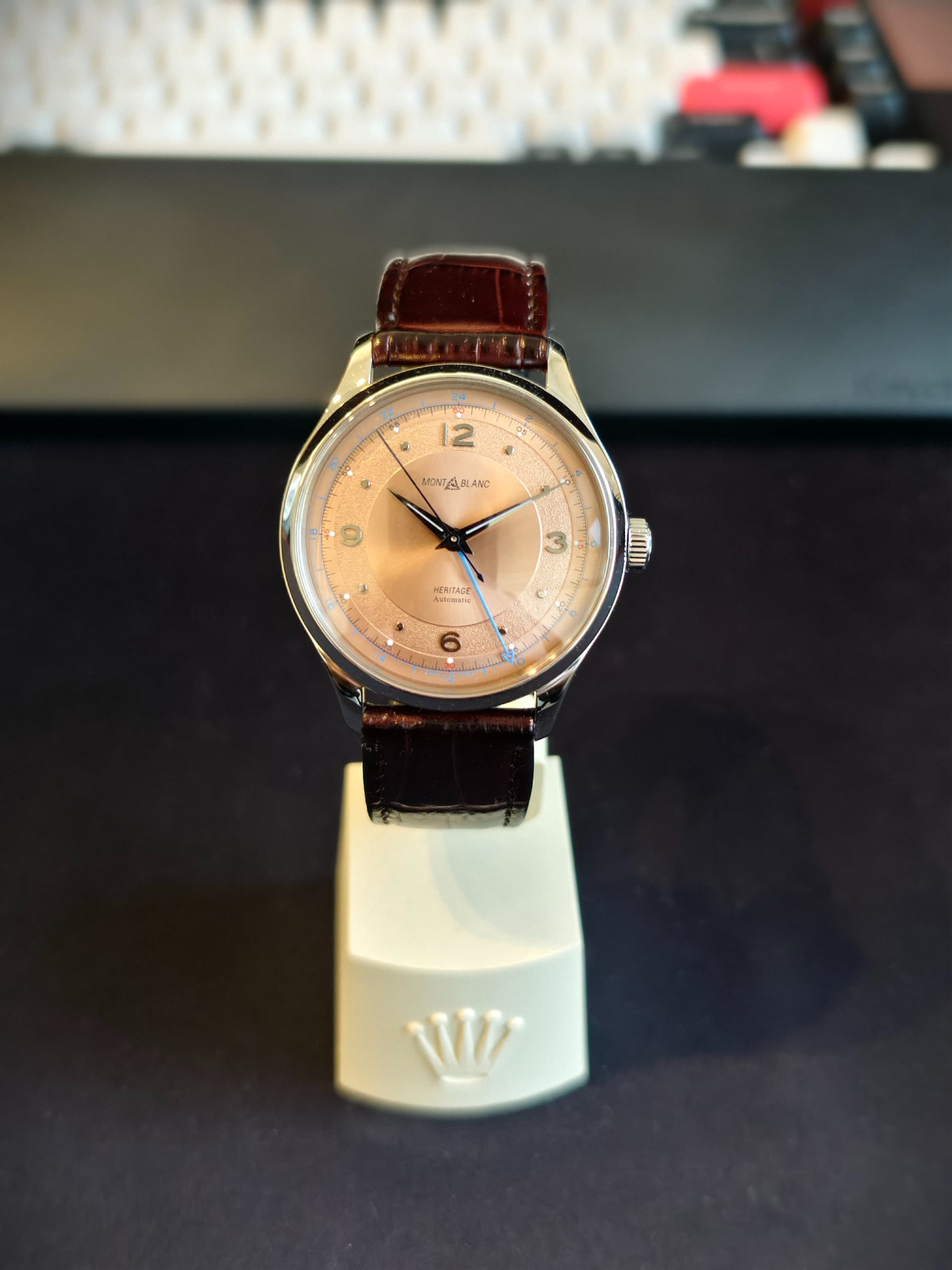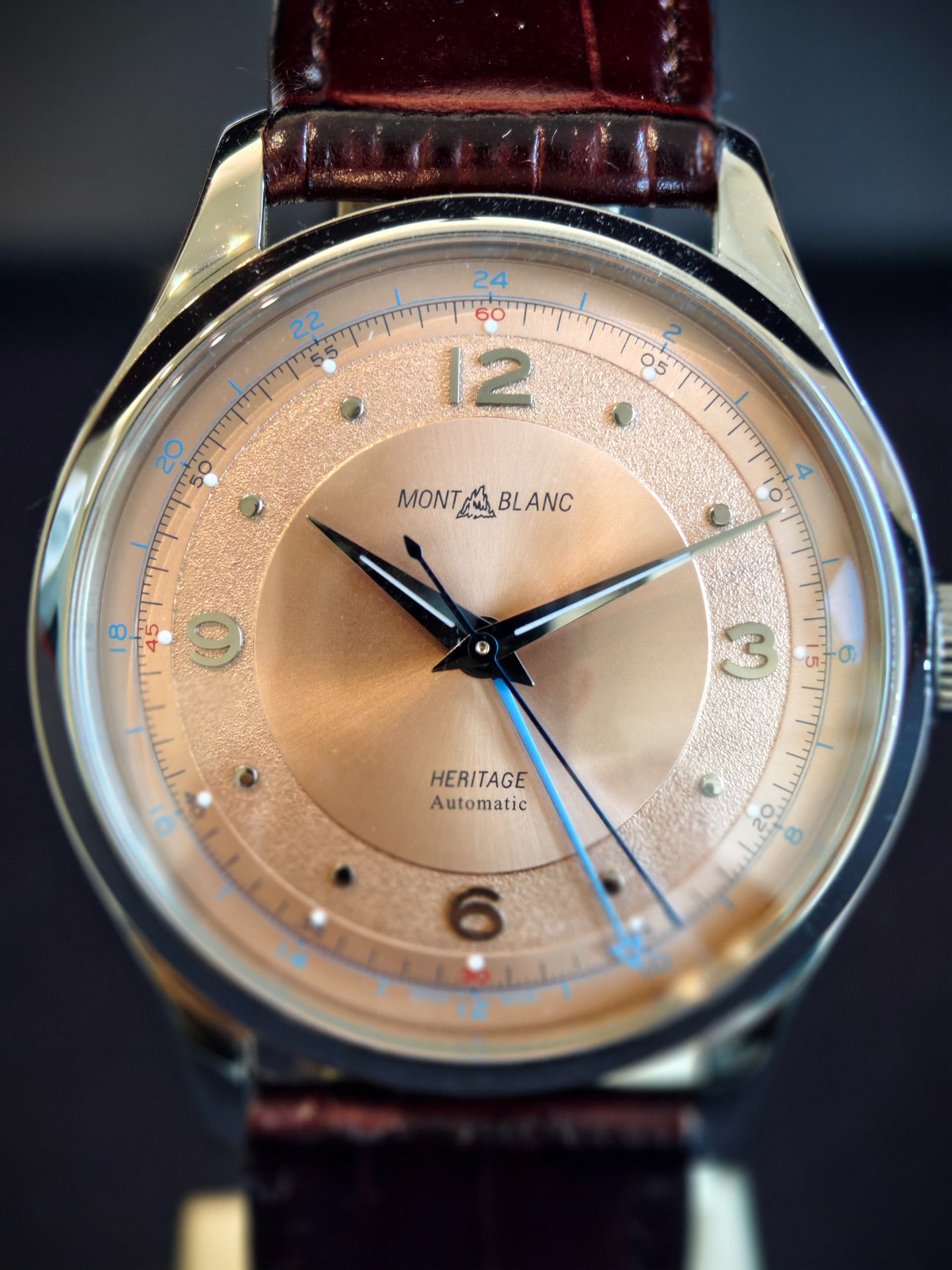 Originele doos en/of eventuele accessoires: Doos + papieren, originele montblanc leren bandje met extra alligator leren portofino bruin band