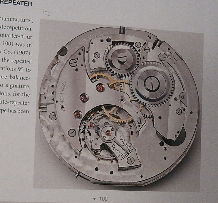 Ik kan je er helaas weinig over vertellen, niet meer dan dat er een zogenaamde repeater in zit wat je zelf ook al had ontdekt. Wel vind ik het een prachtig zakhorloge. Veel plezier er mee.
