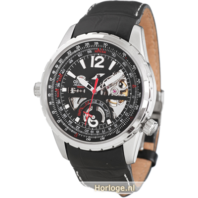 Oef dat is nog al een combinatie. Open gedeelte in combinatie met chronograaf zie je niet heel veel. De enige die mij zo te binnen schiet is deze Junkers 6520-2 (maar dat is een hand opwinder):