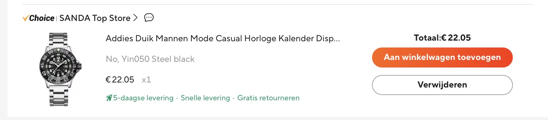 Hetzelfde horloge kocht ik in 2023 voor minder dan €30,00, maar ruilde het tegen een ander horloge.