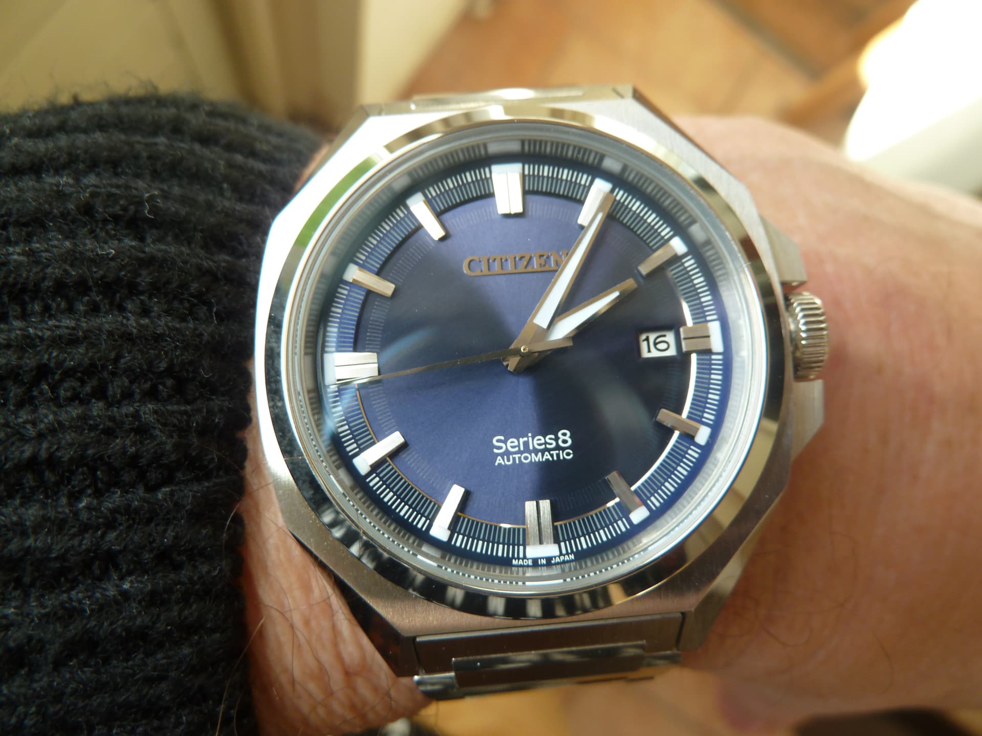 Hierbij een foto van mijn nieuw aangeschafte Citizen Series 8 voor een bedrag van 485,66 incl. verzending. Of het echt de mooiste is weet ik natuurlijk niet, maar voor mij wel. ![]()