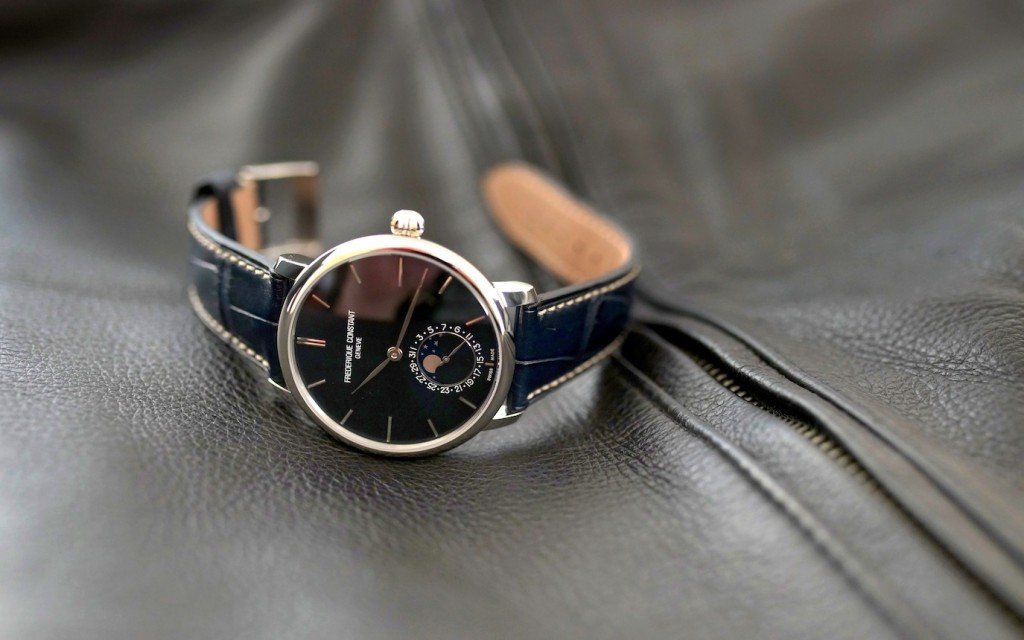 Maurice Lacroix en Frederique Constant hebben allebei een damesmoonphase met donkere plaat voor onder de 1000 euro. Weet niet wat het budget is.