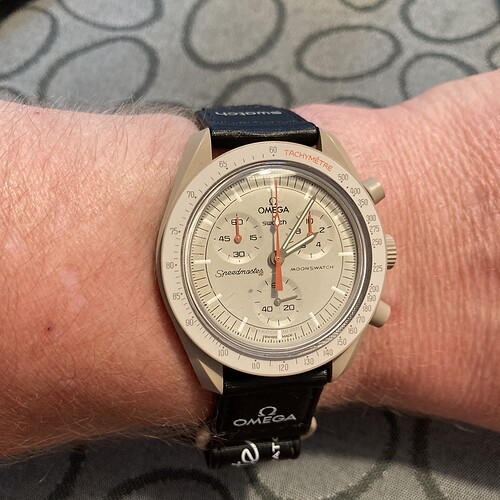 De Fiffer Moonswatch is binnen. Dank aan @Nring voor het initiatief en het ter beschikkingstellen, dank aan @Chlorophyl voor het ter beschikking stellen van de horlogedoos, dank aan mijn voorganger @Plees voor de goede zorgen en het doorsturen, dank aan mijn ouders voor het mij gegeven leven, dank …, nee, ophouden nou, je hebt nog geen oscar gewonnen….