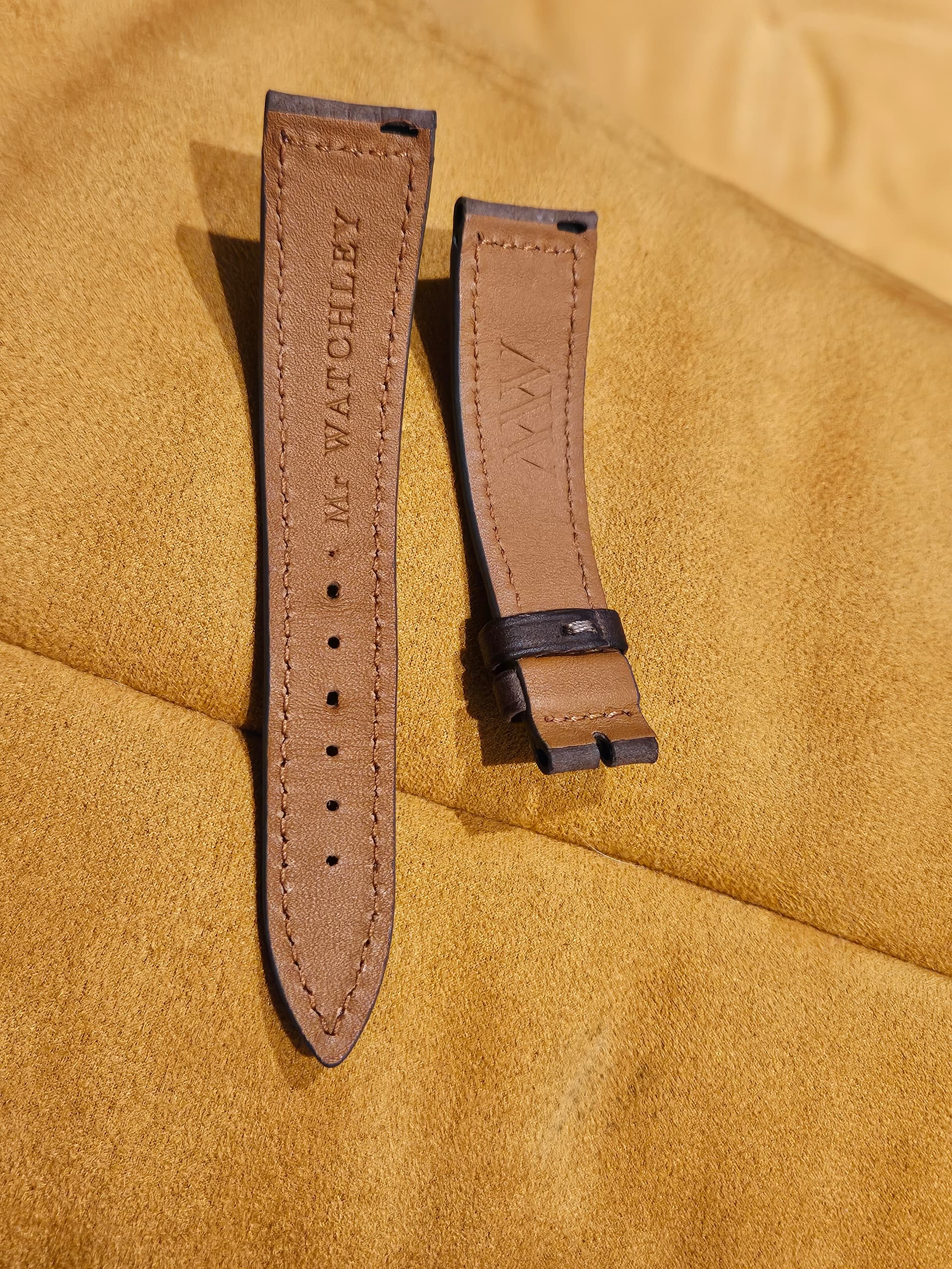 Te koop aangeboden: een prachtig handgemaakt horlogebandje van de Belgische specialist Mr Watchley, model Nubuck Taupe.