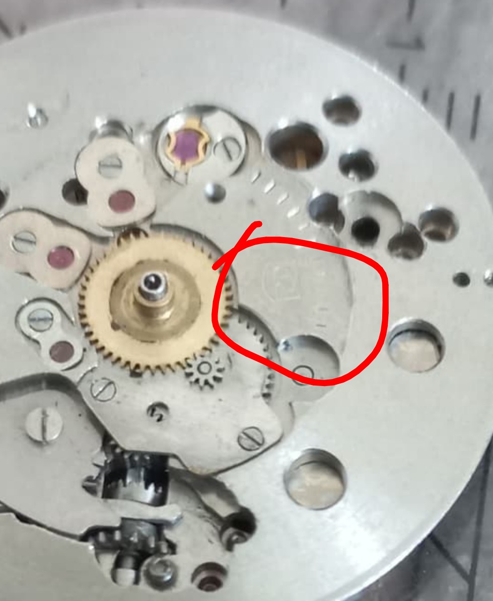 Op de zijkant van de kast staat MOD5246 maar ik neem aan dat dit het model van de kast is. Binnenin, 21 jewels en verder geen nummer. Onder de wijzerplaad staat PD.