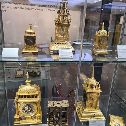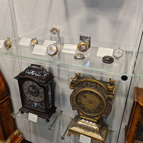 Cartier mysterieuze klok (weer gebaseerd op Houdin), hele vroege Augsburger Tischuhr (circa 1540), planetarium klok, marine chronometer van Berthoud