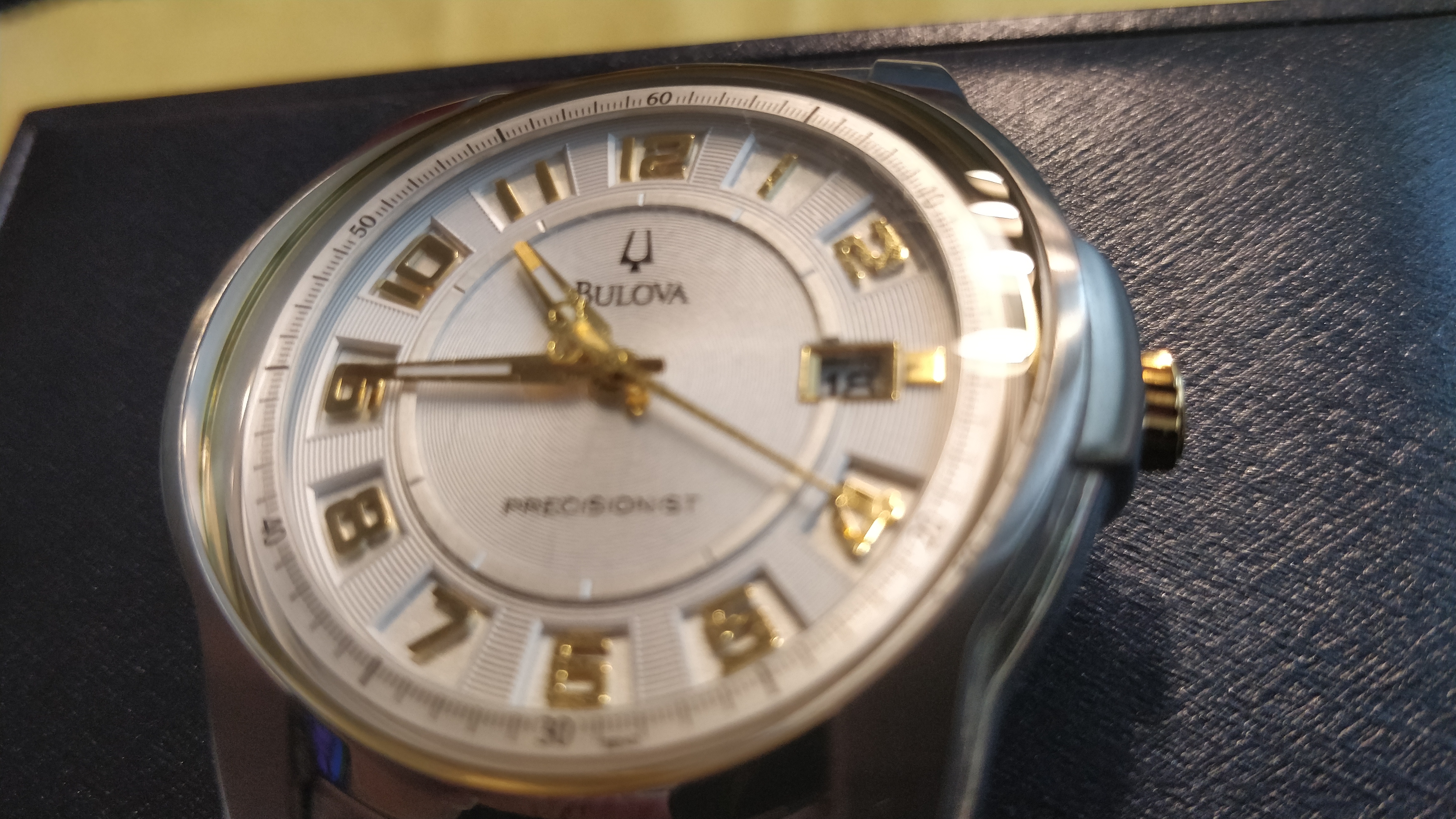 Het is Bulova Precisionist 98B140 geworden. De contrast van gouden wijzers en indices / nummers op de ivoren witte dial gaven de doorslag.