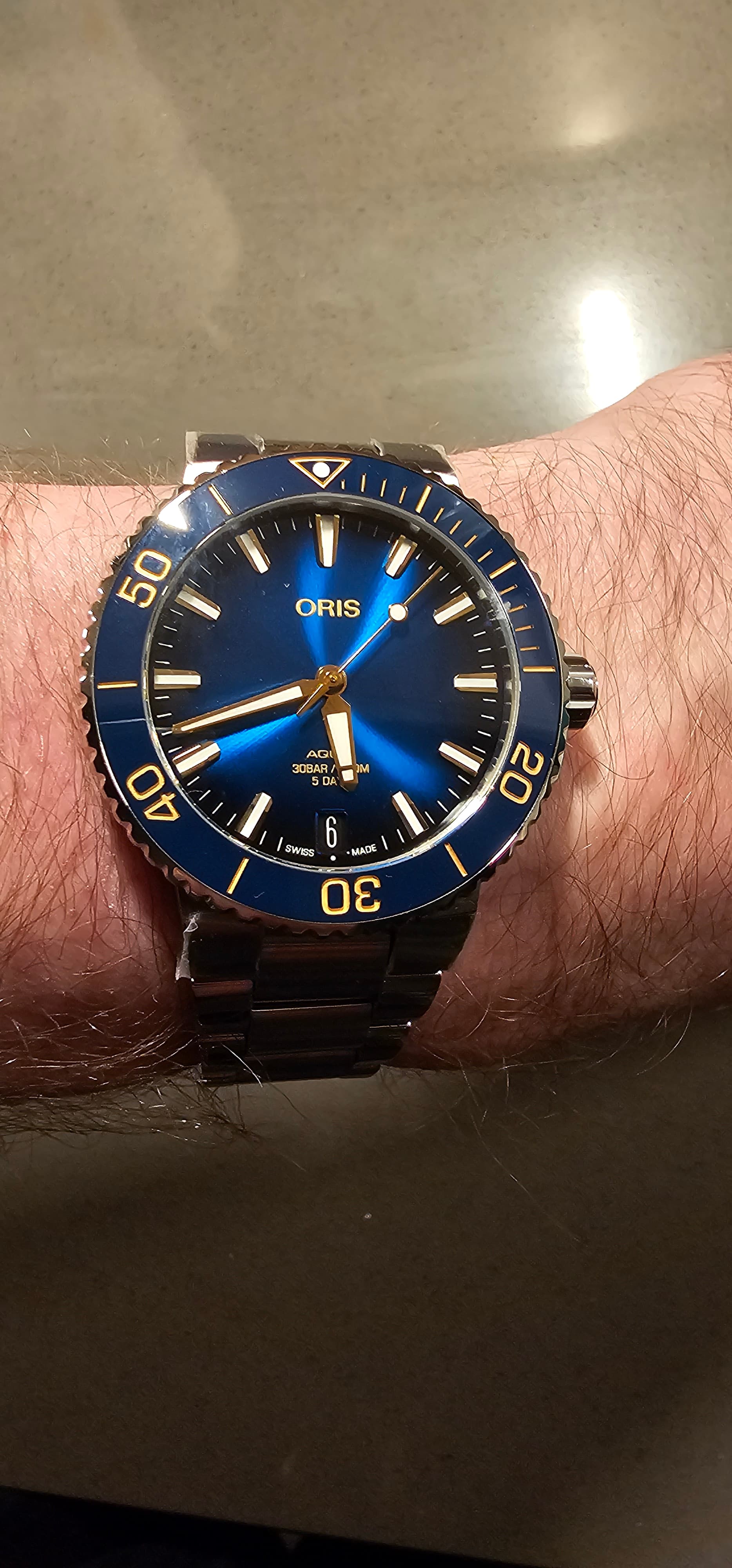 Al enige jaren wou ik graag weer een Oris Aquis na een zwarte small second (met oranje wijzers) en een Source of Life te hebben gehad. Met name van de laatste heb ik achteraf spijt gehad deze weg te hebben gedaan.