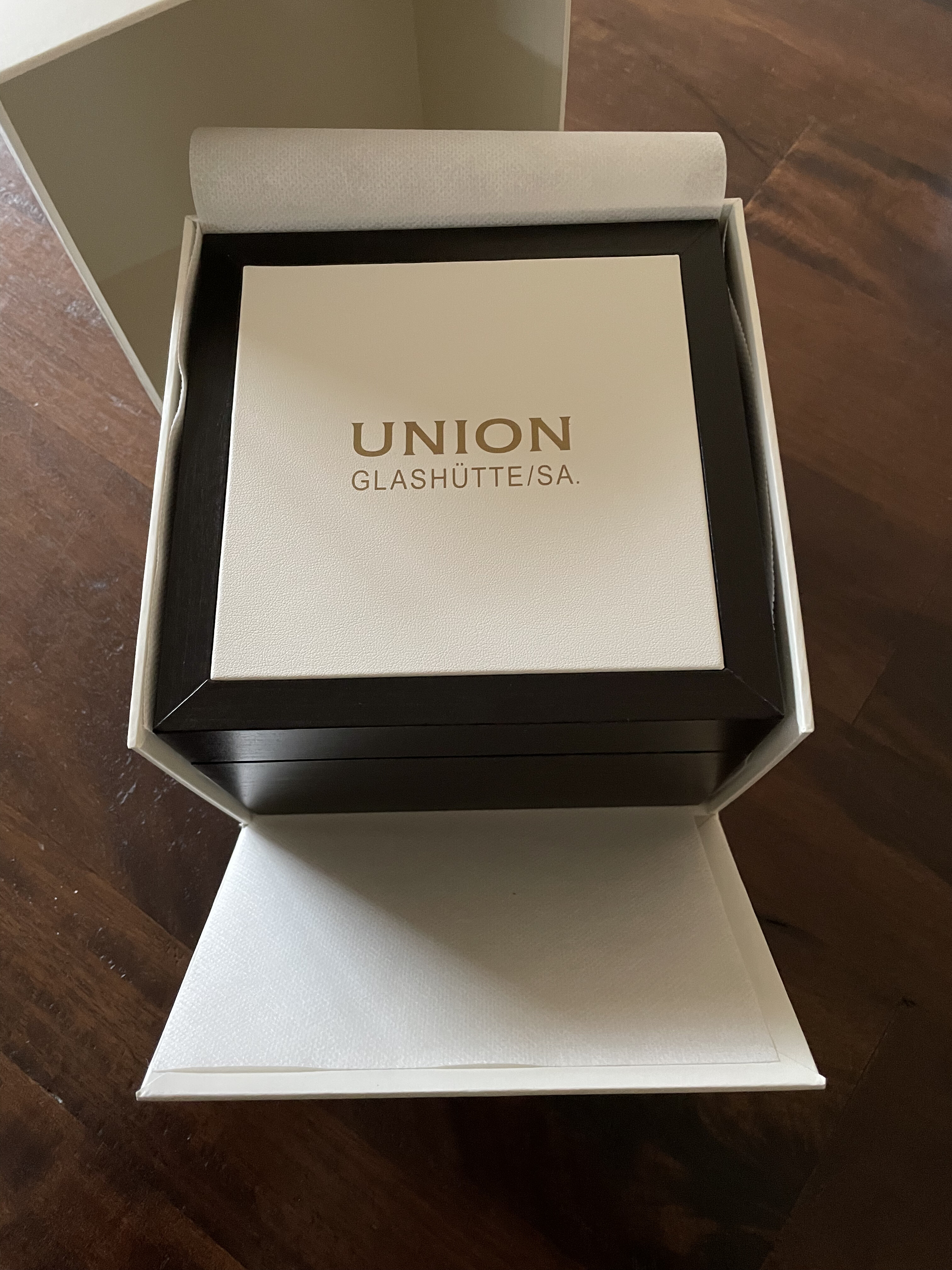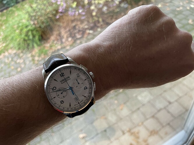 Na het nodige zoekwerk heb ik uiteindelijk besloten de dagaanduiding te laten voor wat het is en een horloge te kopen van een merk wat me al geruime tijd aanspreekt, een Union Glashütte. Ik had alleen de indruk dat hun modellen met 43-44 mm erg groot waren.
