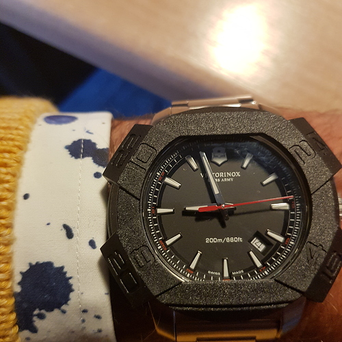 Ik herinner me de toestand van je vorige horloge. Hoewel deze eruit ziet alsof hij wel tegen een stootje kan zou ik het toch zonde vinden als deze mooie Victorinox hetzelfde lot zou ondergaan.