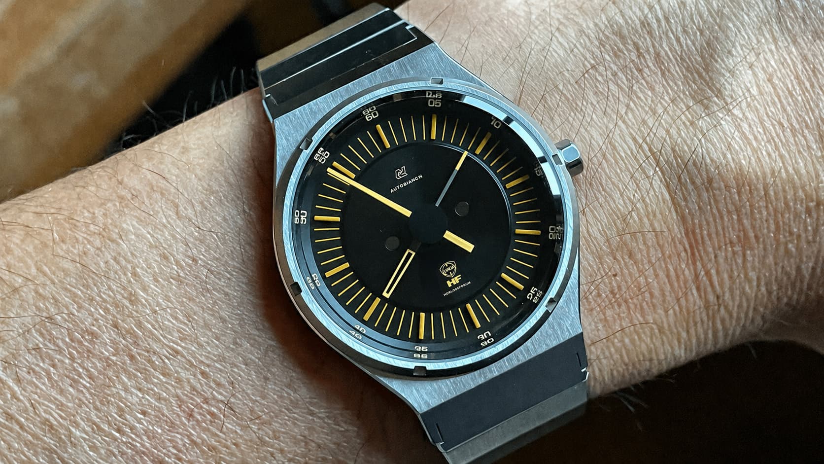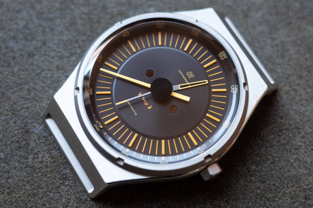 Wat een heerlijk horloge. De strakke vormgeving, de aansluiting van de band aan de kast en een wijzerplaat die een link heeft met een van mijn favoriete auto’s aller tijden. Echt top.