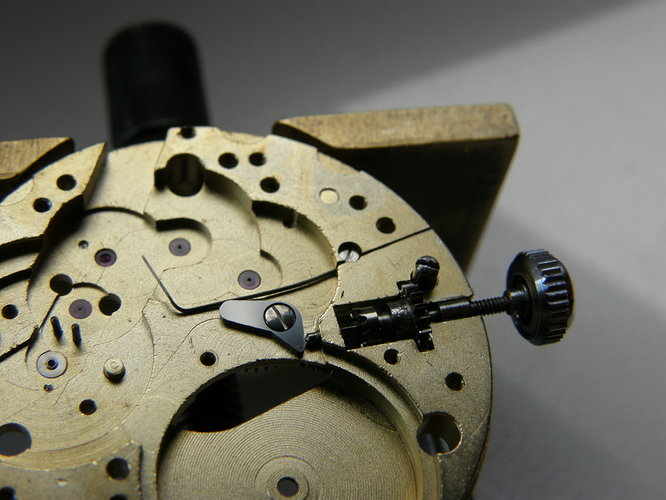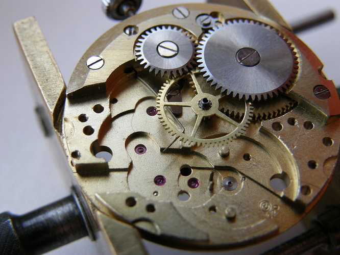 Het uurwerk is in ieder geval orgineel, inclusief de zwanehals (sorry wederom voor de zwakke foto, ook door een loupe genomen).