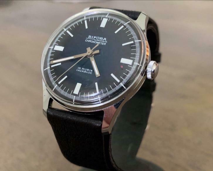Ik was zuiver op deze foto afgegaan maar toen ik me wat ging oriënteren op het gebied van Bifora bleek dit exemplaar mogelijk een echte collectors item te zijn, de Bifora Unima Chronometer.