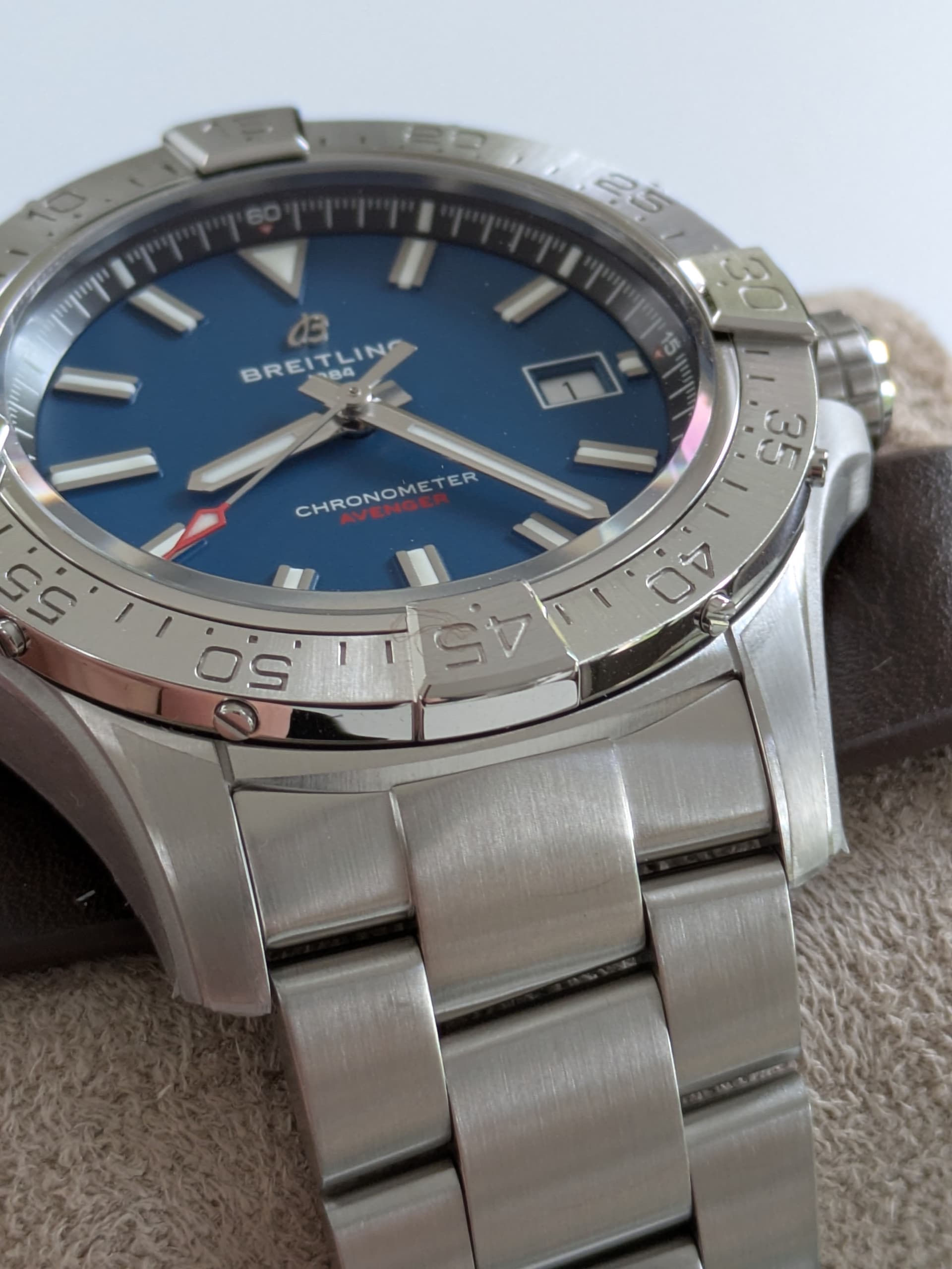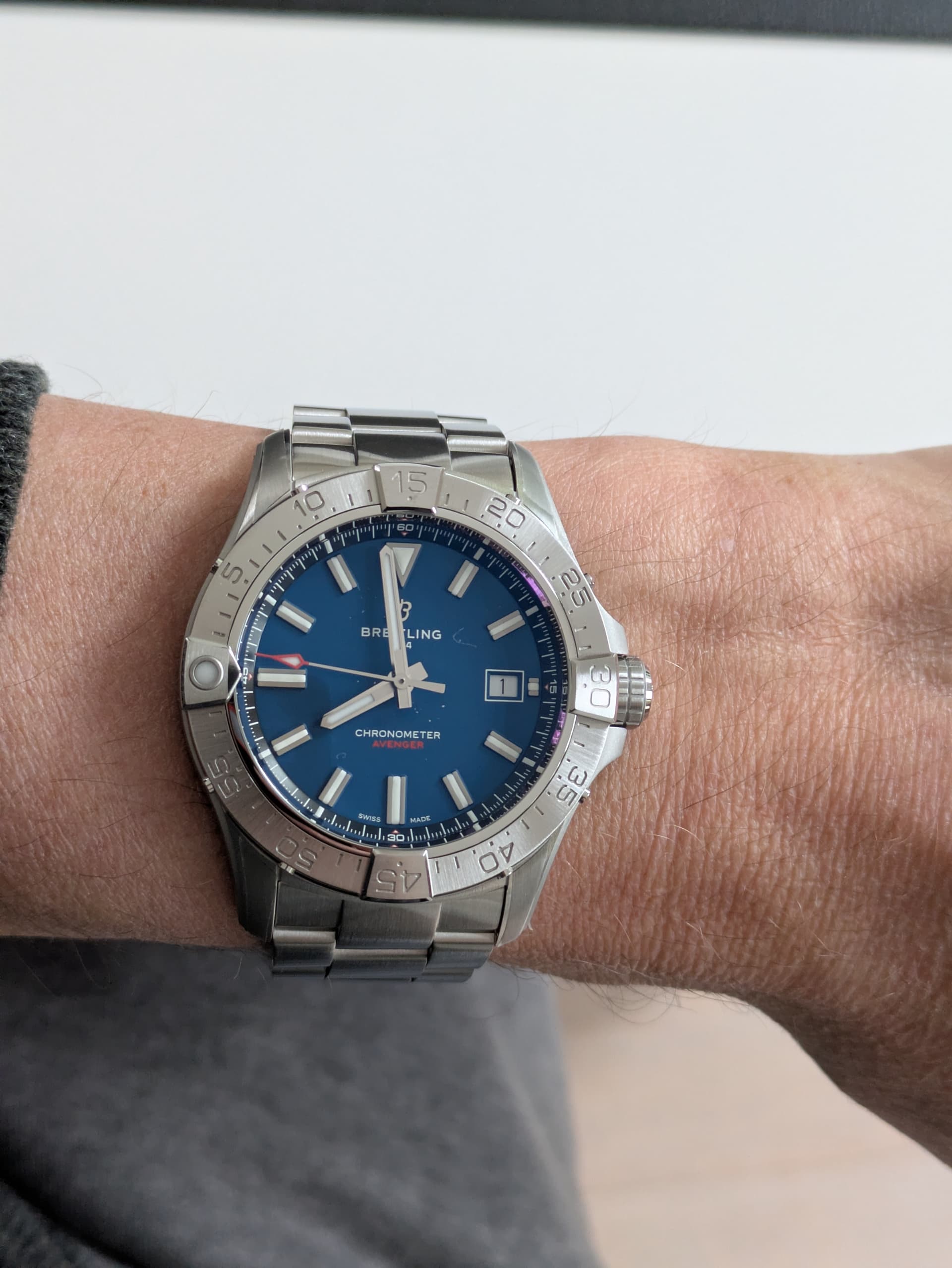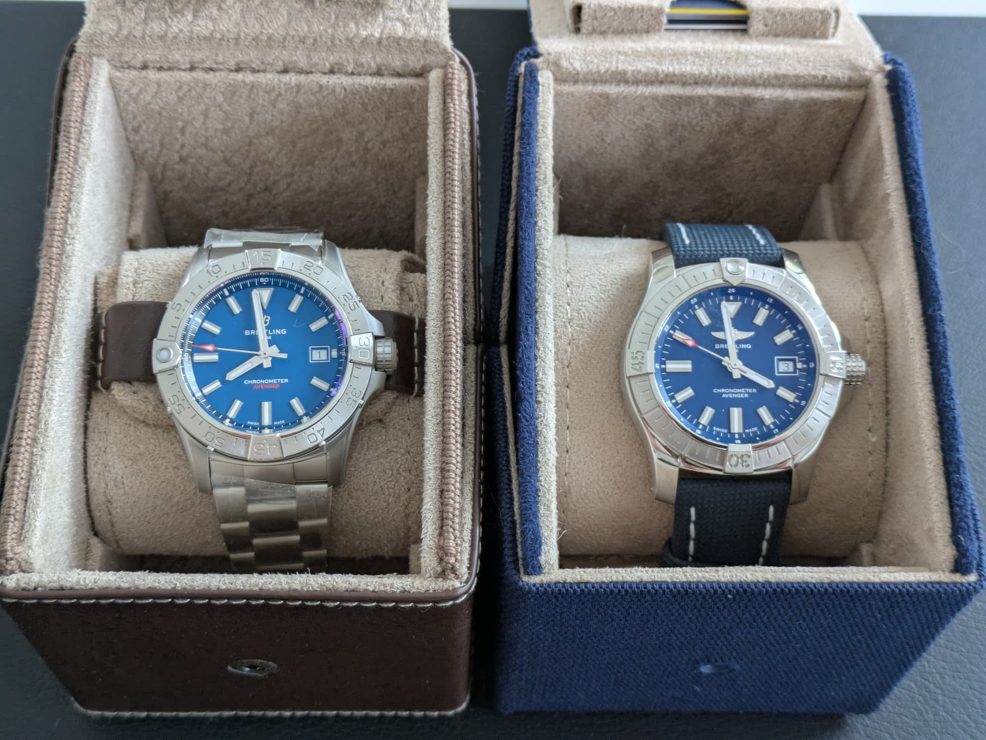 Beide zijn mooi. Ik ga niet zeggen dat ik de 42 mooier vind. Ze zijn verschillend. De 43 heeft iets. Valt meer op. Is echt klassiek Breitling. De 42 is wat subtieler, misschien meer dress-watch. De 42 is voor mij beter door de maat en de perfecte bracelet met micro adjust.