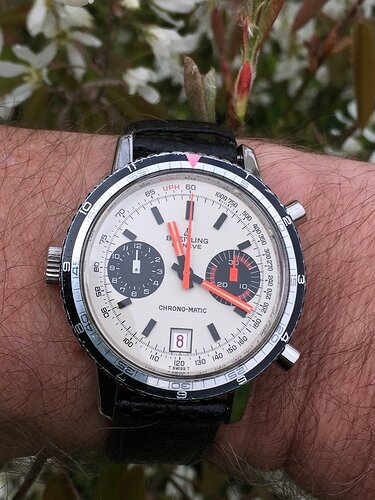 Ik was al lang op zoek naar een mooie uitvoering van wereld’s eerste automatische chronograaf. Aangezien de Heuer modellen buiten mijn budget liggen en de meeste Hamilton en Buren modellen me of minder aanspreken of zeer moeilijk te vinden zijn, kwam ik uit bij de Breitling Chrono-Matics: