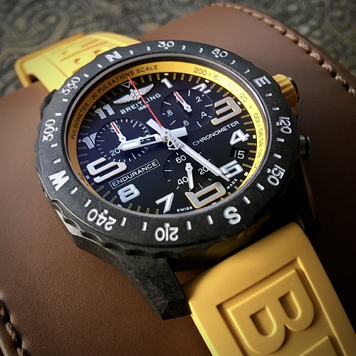 Maar F* ck het… toen hij uitkwam was ik om! Mijn eerste Breitling en wat een gaaf ding! Mijn zojuist aangeschafte G-Shocks (Frogman en de Rangeman) eruit gedaan en daar moest de Breitling voor terug komen! Kleur was van meet af aan duidelijk: Geel. Oranje vond en vindt ik ook tof… maar de Ploprof die ik bezit was al voorzien van origineel oranje rubber plus een nieuwe oranje Isofrane.