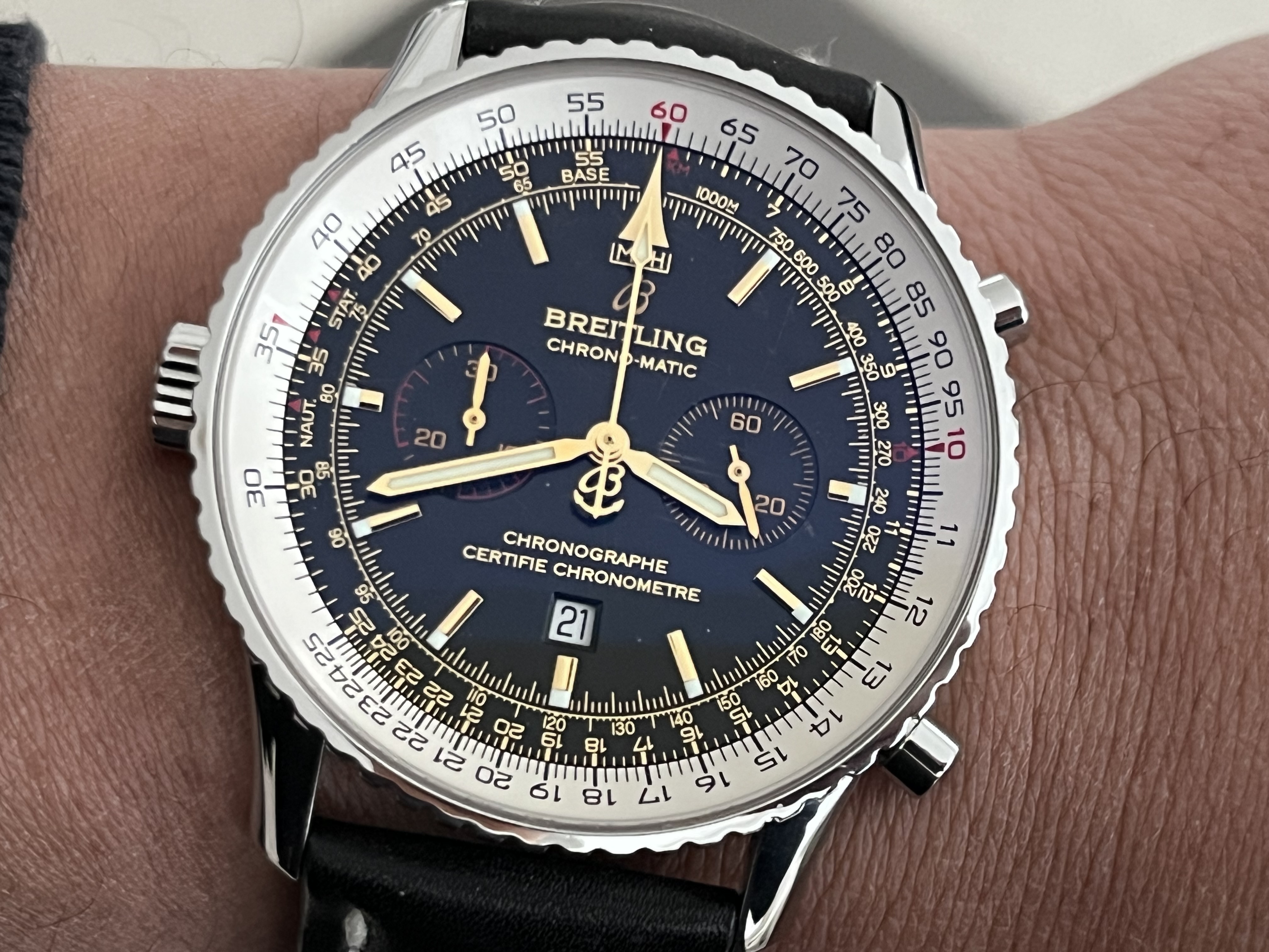 Een neo vintage Navitimer met een geproduceerde oplage van slechts 1.000 stuks in deze puike staat en in zo’n volle set is zoveel jaar na dato bijna onvindbaar. Bijna dan… Dus na vlot en prettig contact met de verkoper was de deal snel beklonken. De onderhandeling heeft ongeveer een halve minuut geduurd