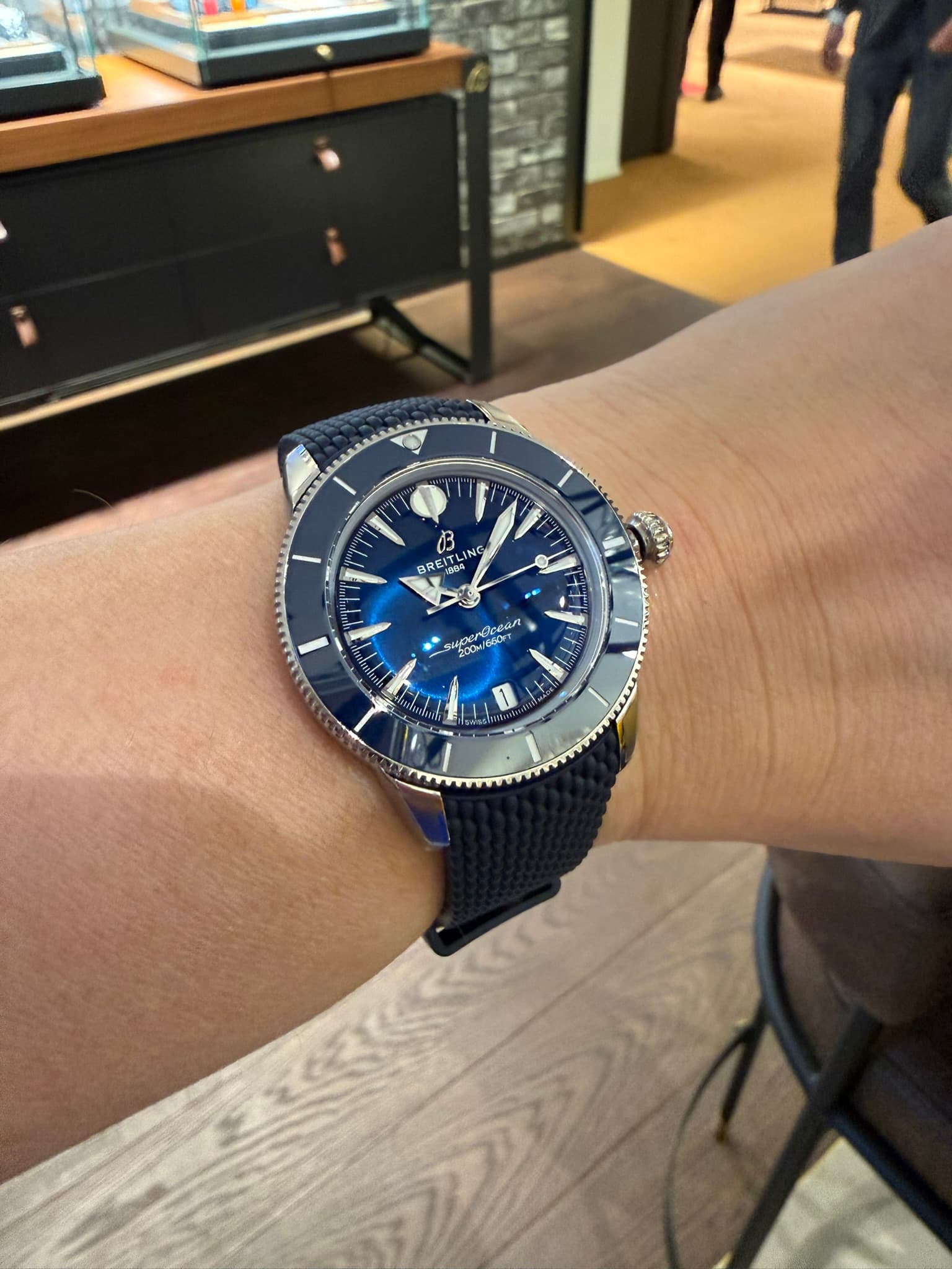 Met de zomer en vakanties in aantocht dit weekend op pad geweest voor een horloge voor mijn vrouw dat ze altijd kan dragen. Je wil maar 1 horloge meenemen op vakantie en dat ook gewoon in het water kunnen dragen. Door Mirjam uit B&B vol liefde was haar oog al een keer gevallen op een Breitling Superocean Heritage. De 36 mm variant die er sinds een jaar is, sprak haar aan, dus die zijn we afgelopen zaterdag gaan passen bij S+C in Eindhoven. De variant op blauw rubber is toch wel de mooiste (vinden wij). Na er nog een nachtje over geslapen te hebben zijn we op zondag terug gegaan om over te gaan tot koop. Wat een prachtig horloge dat je altijd en overal kunt dragen. Wij zijn klaar voor de zomer!
